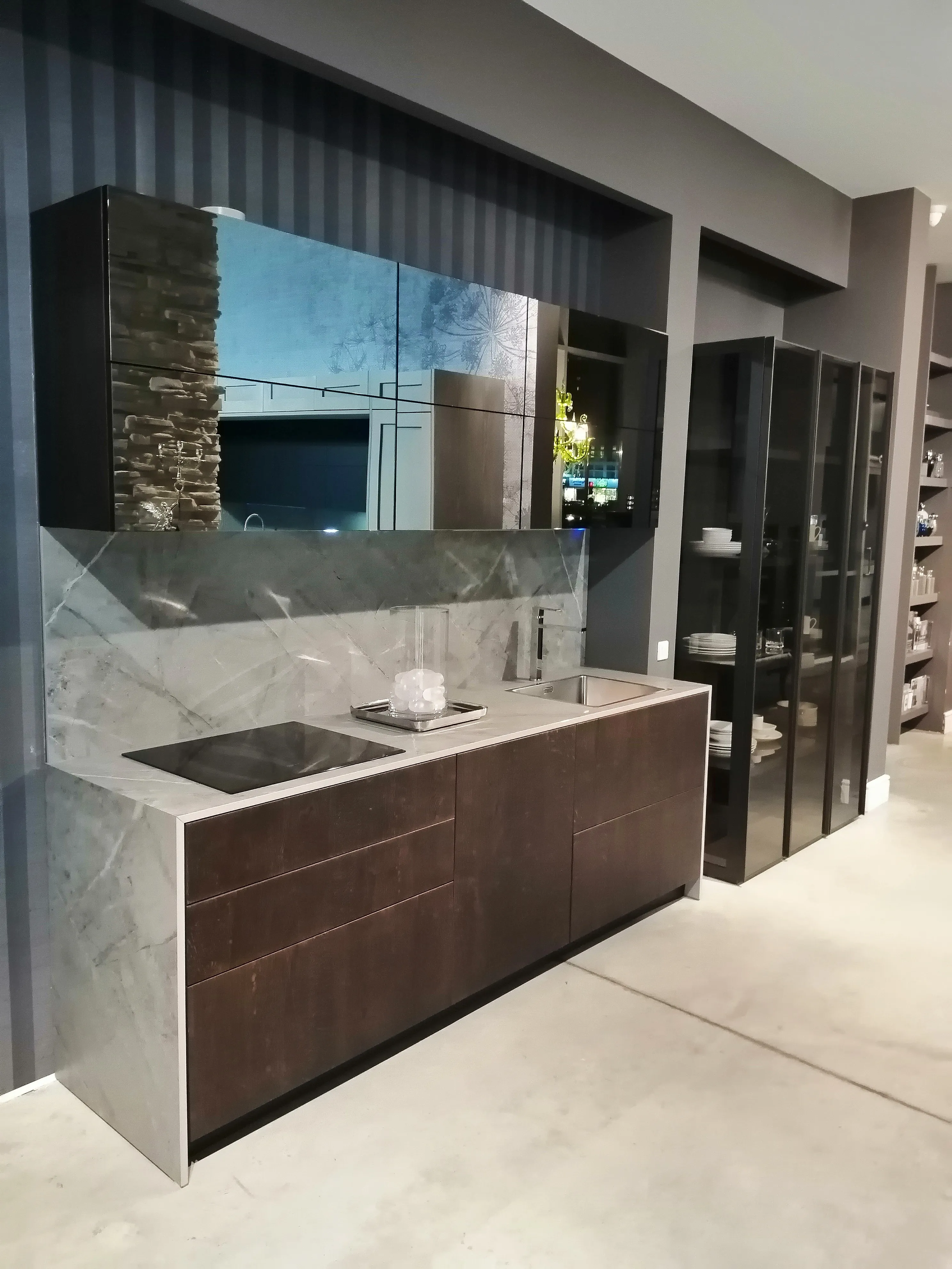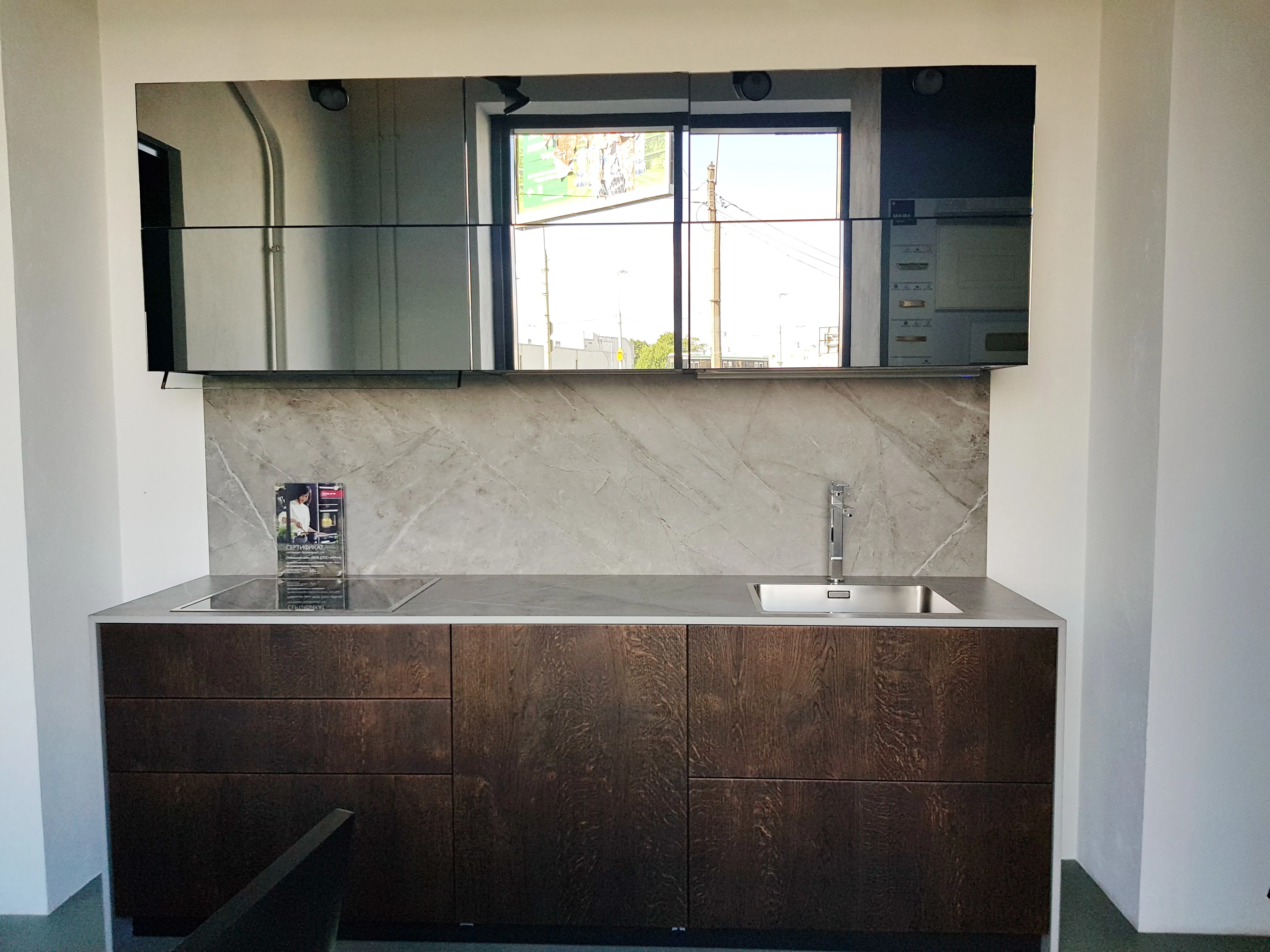 Фасад: Шпон Rovere nodato moka, зеркало Specchio tel. nero