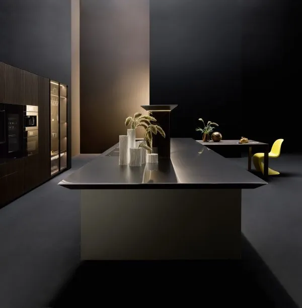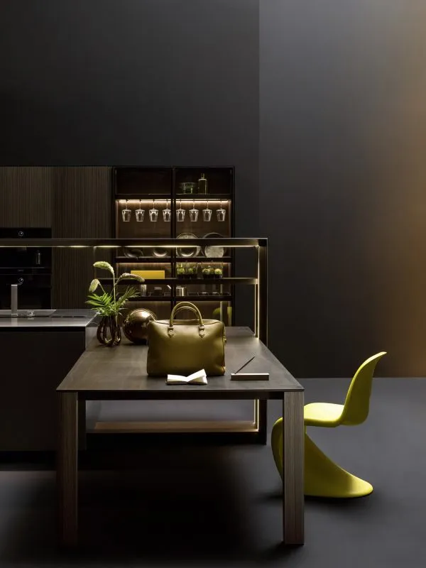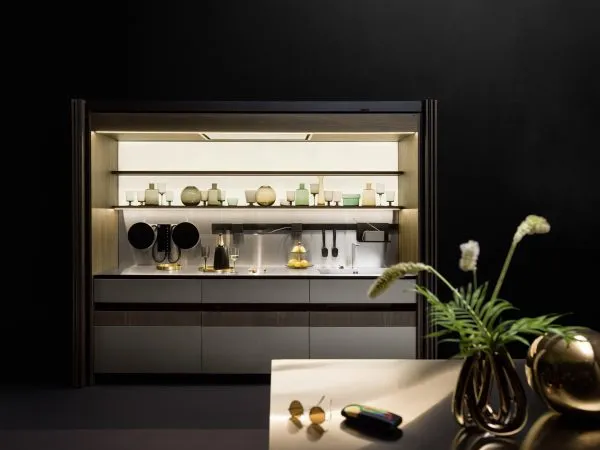 Коллекцию завершает новая система хранения Sipario с четырьмя выдвижными дверцами; которые могут быть сконфигурированы внутри в различных вариантах; включая решение со встроенной вытяжкой.