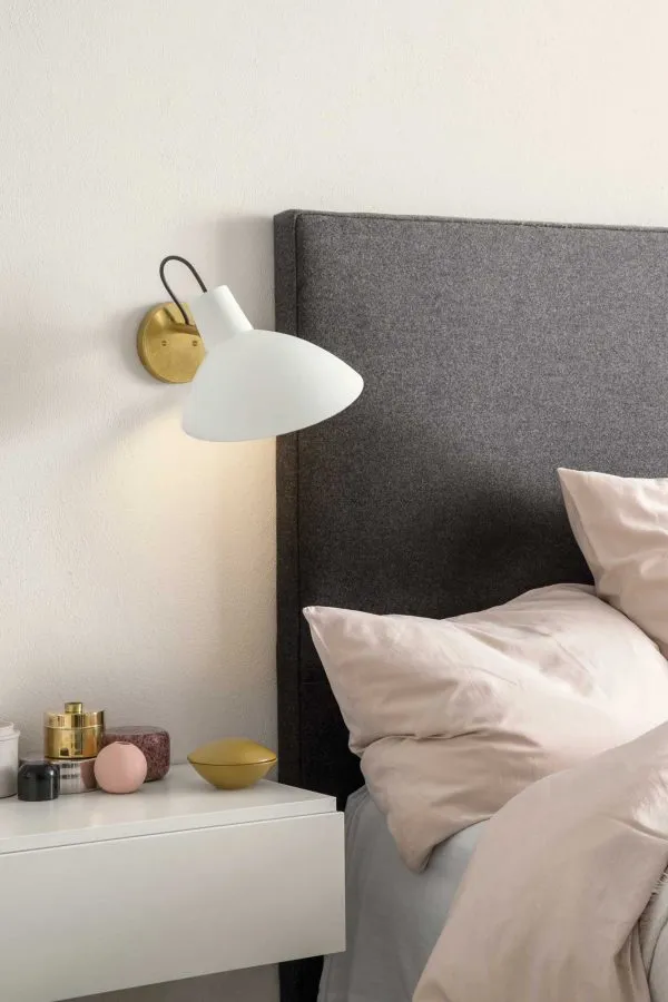 Модель Wall установлена на латунном приспособлении; позволяющем поворачивать отражатель на 350 градусов; а угол поворота – 160 градусов. Алюминиевый плафон с обрезной кромкой на латунном основании можно поворачивать на 350о и наклонять на 160о. Регулируемое основание позволяет создавать прямое или рассеянное освещение в комнате. В качестве источника света используется 1 светодиодная лампа мощностью 7 Вт с обычным цоколем E27. Бра может быть белым или черным.
