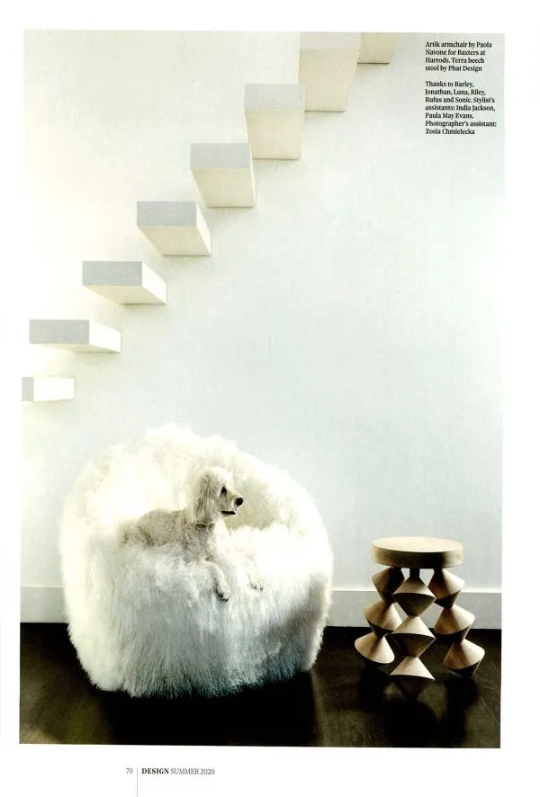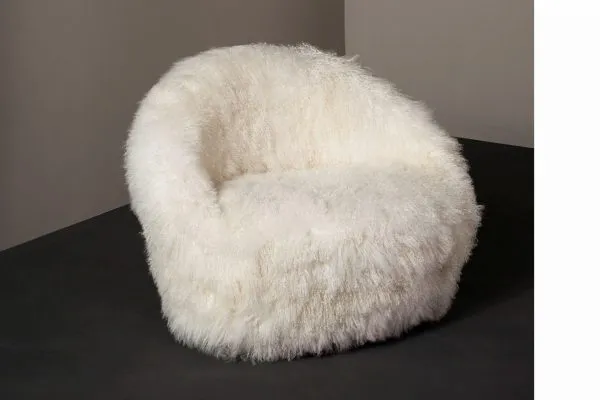 Вращающееся кресло Artik от итальянской фабрики Baxter – творение Паолы Навоне. Кресло обтягивается мехом цветов белый; голубой; бордо и песочный (camel). В качестве наполнителя используется пенополиуретан.