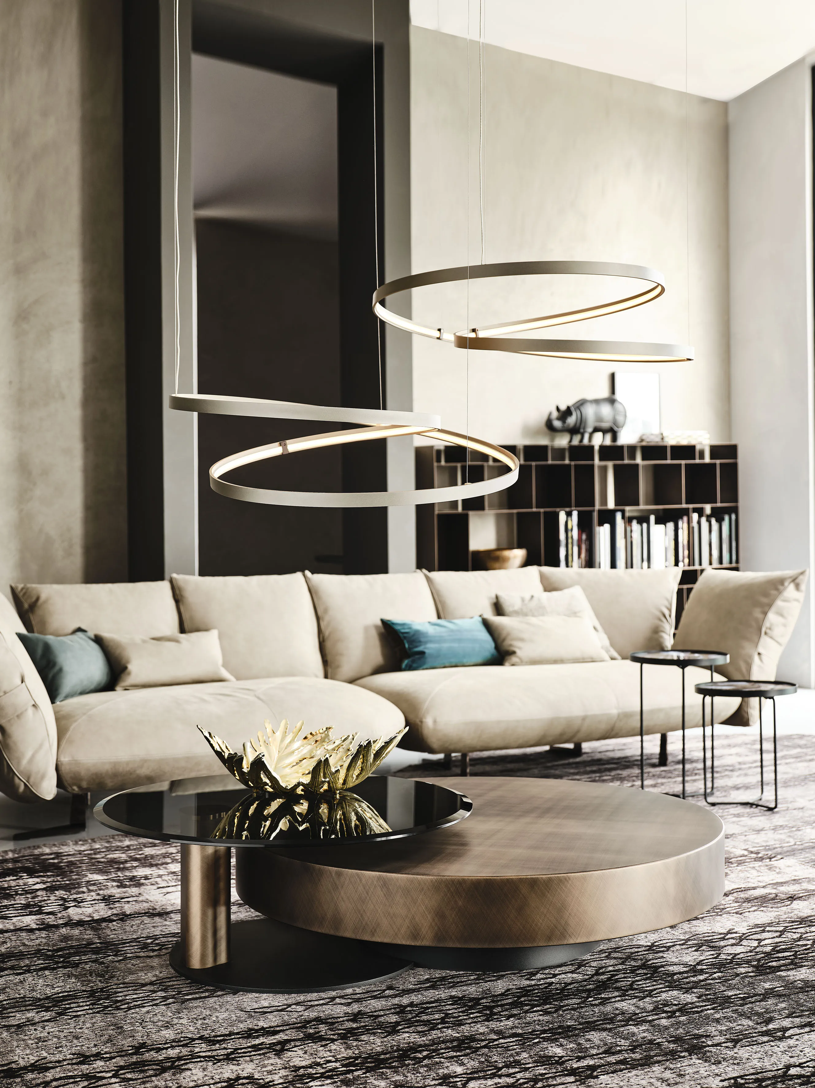 Линия журнальных дизайнерских столиков Arena завершает современную элегантную гостиную, подчеркивая драгоценную отделку Brushed ручной работы. Опытные мастера наносят тонкие и незаметные царапины, создавая незатейливый и гармоничный орнамент. Дизайнер Ясухиро Шито продумал каждую деталь для получения сильного эстетического эффекта, который не пренебрегает функциональностью просторной столешницы. Этот современный журнальный столик предлагается в двух моделях, но в общем 5 вариантах. Arena- это круглая модель; которая может быть дополнена одним или двумя круглыми поворотными столикамииз стекла, устанавливаемых рядом с основным столом: Arena Bond и Arena Double Bond. С другой стороны, удлиненная модель Arena Long, также доступна в версии Arena Long Bond. Колонна стеклянного журнального столика Bond покрыта вручную лаком того же цвета, что и основная столешница.