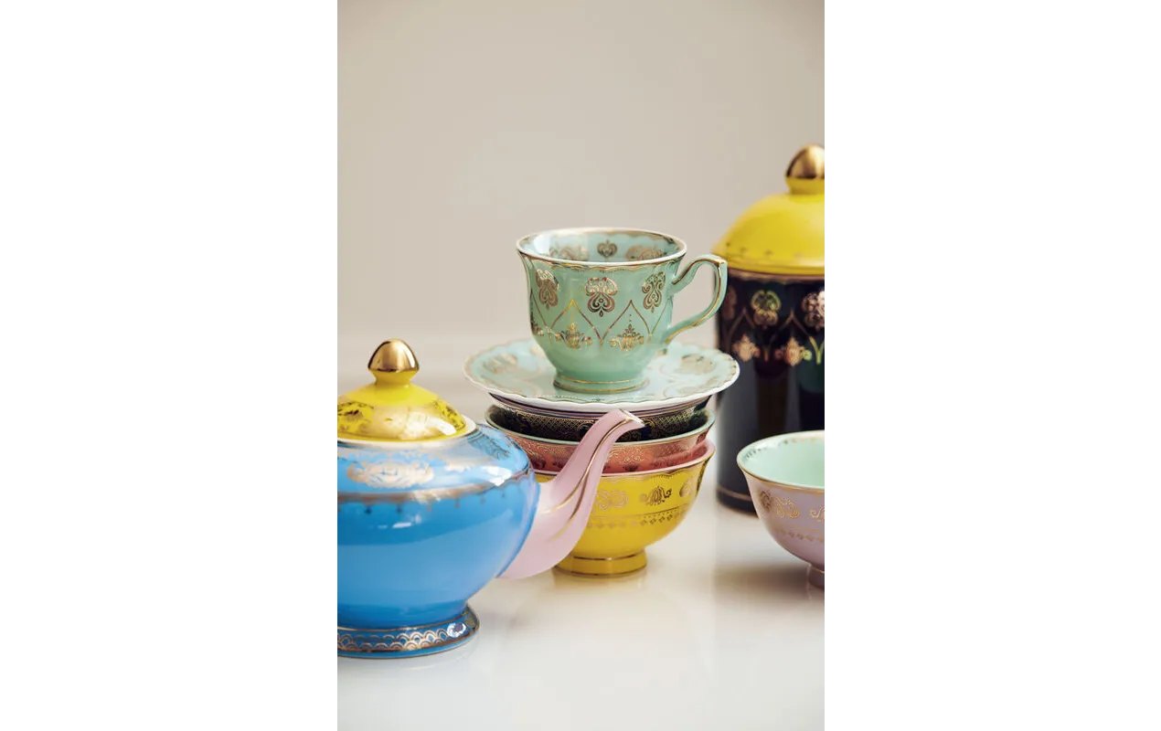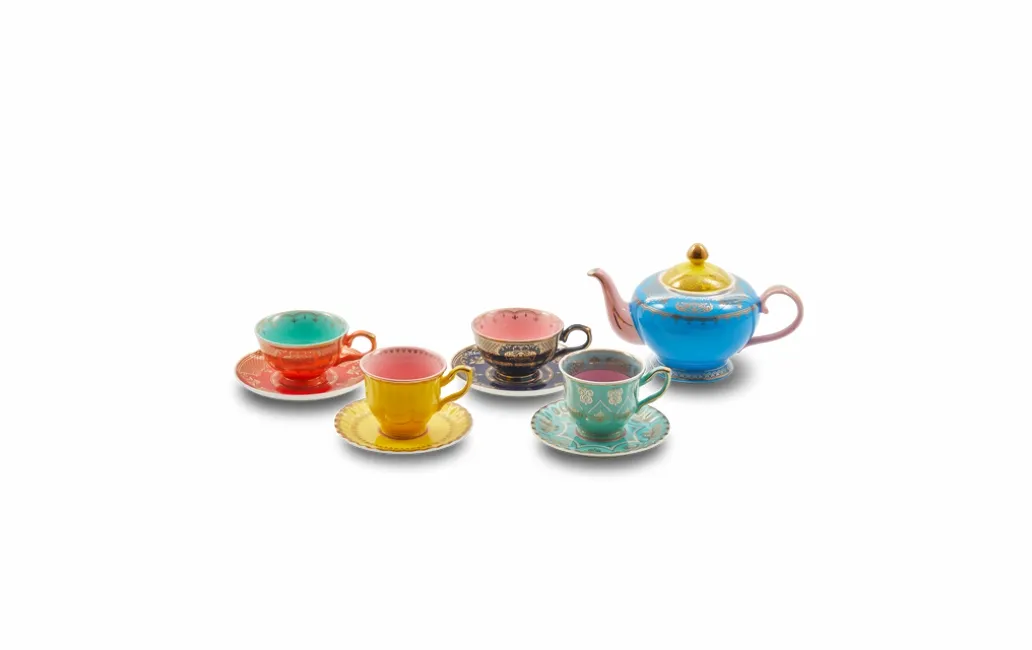 Чайные пары Grandpa от PolsPotten созданы из фарфора, покрытого глазурью. Каждая чайная пара украшена золотым узором в восточном стиле, 4 разного цвета и дизайна. Чайная церемония может быть не только в ресторане или специальном месте. Устроить чаепитие по всем правилам можно и дома, для этого вам понадобиться красивый чайный сервиз. Чайный набор «Дедушка» гармонично дополнит пространство или станет акцентной деталью в вашем интерьере.