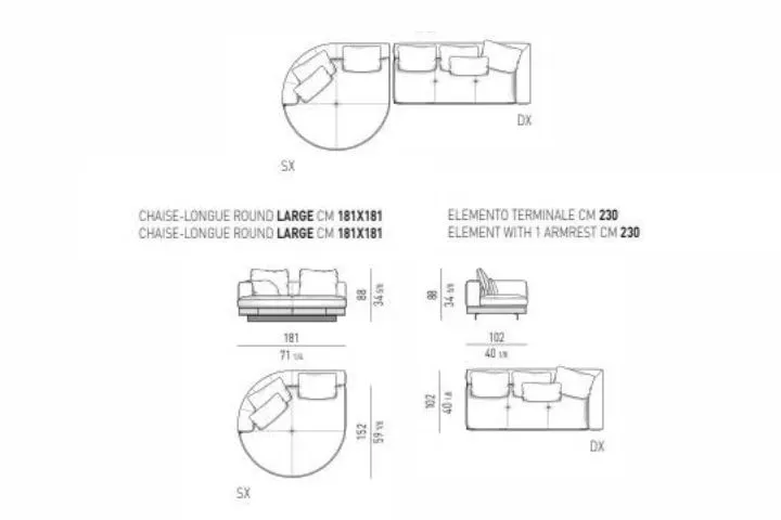 Диван CONNERY от итальянского бренда Minotti, созданный Rodolfo Dordoni, предлагает множество различных композиционных вариантов, используя круглые и квадратные формы.