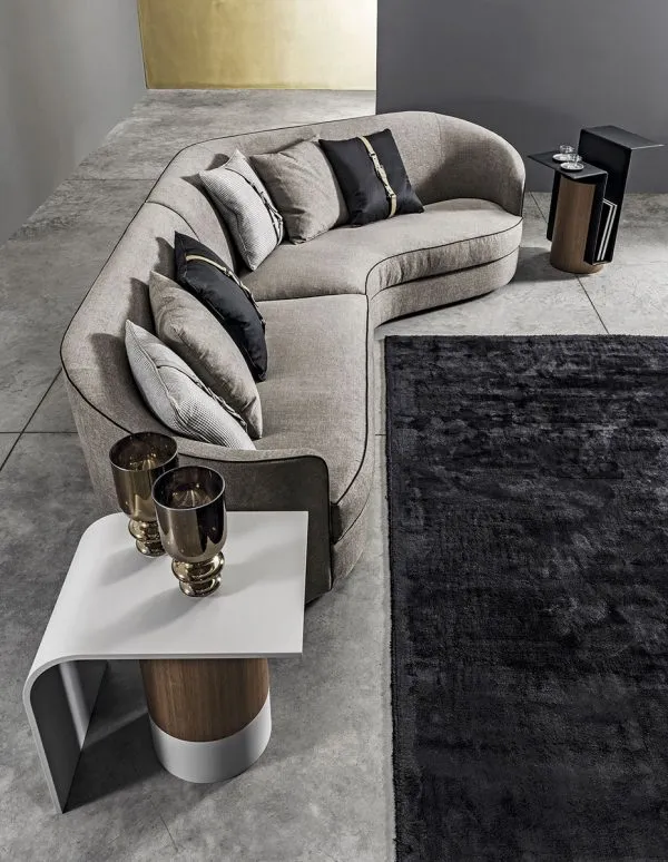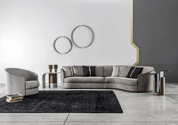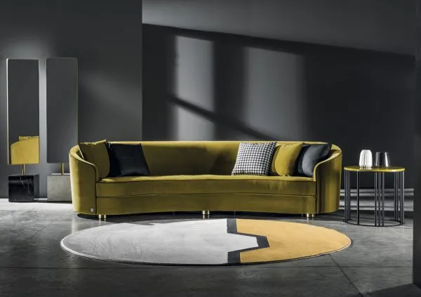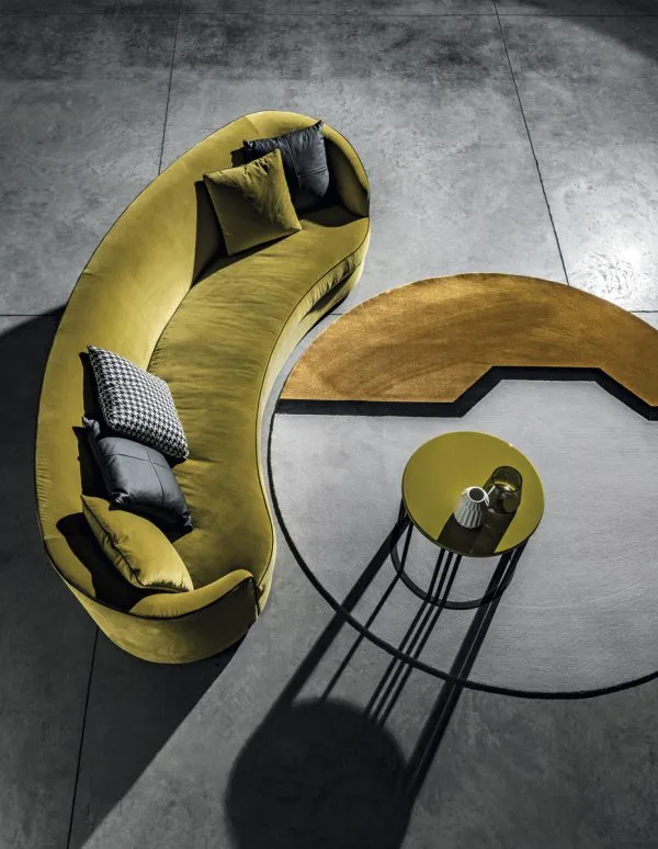 Изогнутые формы придают особый шарм дивану Positano. Контрастный профиль «усиливает» его фигуру. Лаконичный дизайн и золотые ножки; которые идеально сочетаются с цветом; делают модель маленьким шедевром с собственной историей. Несмотря на легкий «винтажный» шик; Positano выглядит очень современно.