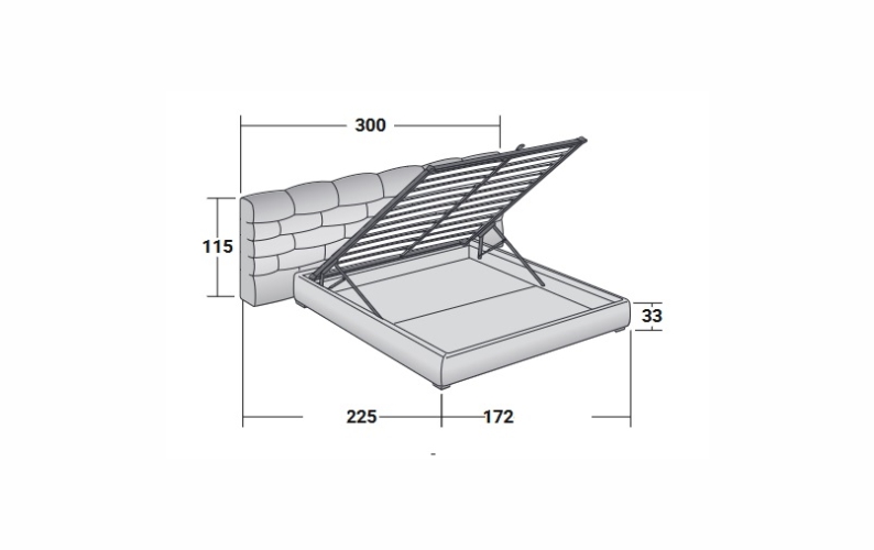 Подъемная решетка имеет специальную регулировку жесткости на ламелях в основной зоне максимальной нагрузки. На основании кровати чехол из ткани имеет липучки для легкого снятия. Широкое изголовье кровати - со съемным тканевым чехлом.