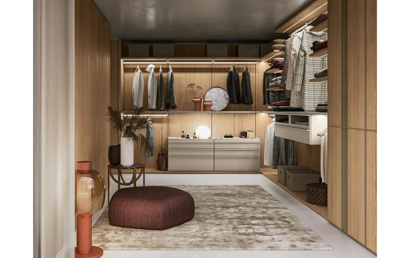 Гардеробная система Cremagliera от итальянского бренда KICO — это современное решение для организации пространства, сочетающее в себе элегантный дизайн, функциональность и высокое качество исполнения. Разработанная внутренней дизайн-студией KICO, система отличается открытой конструкцией и модульностью, что позволяет адаптировать её под индивидуальные потребности и особенности помещения.