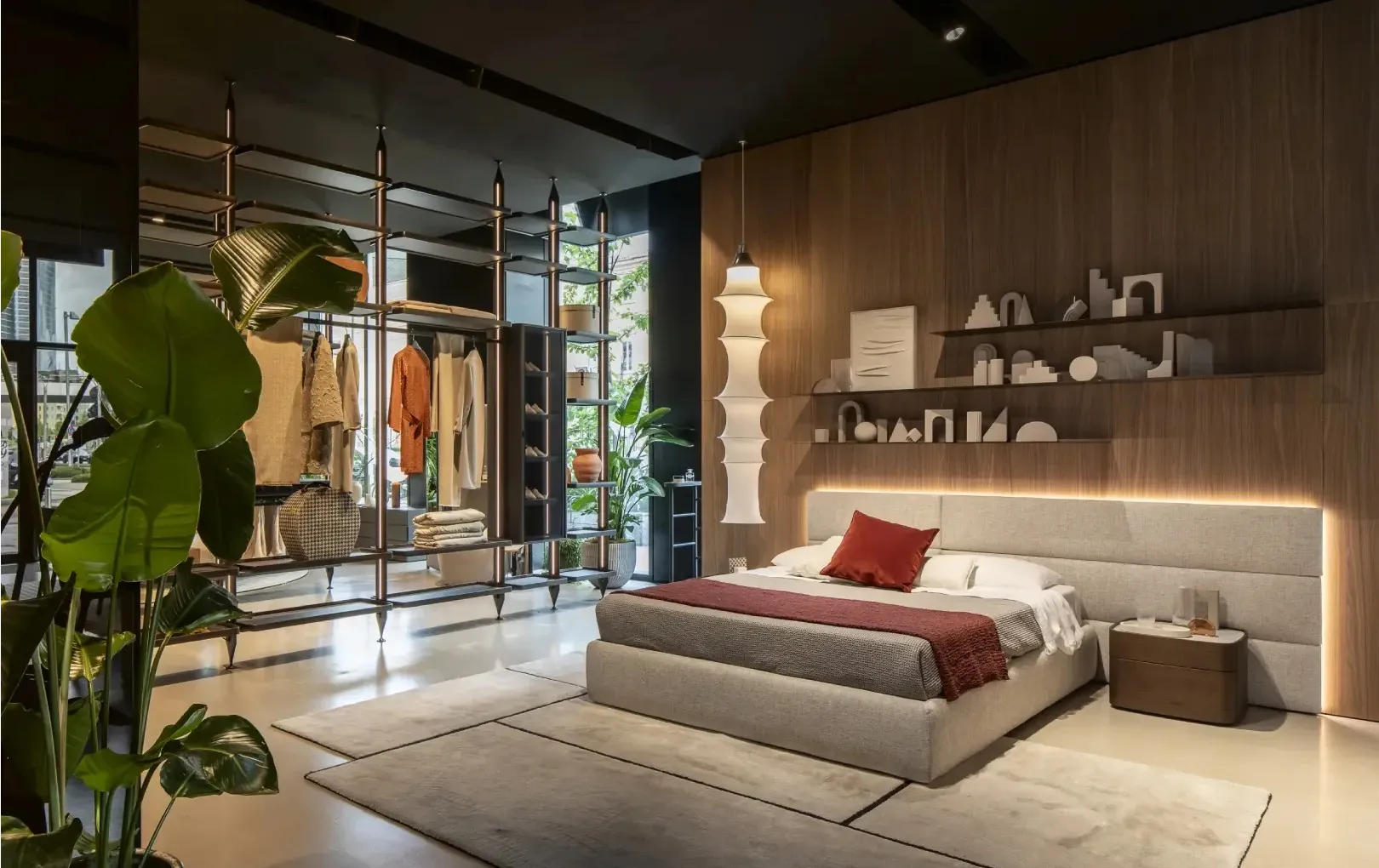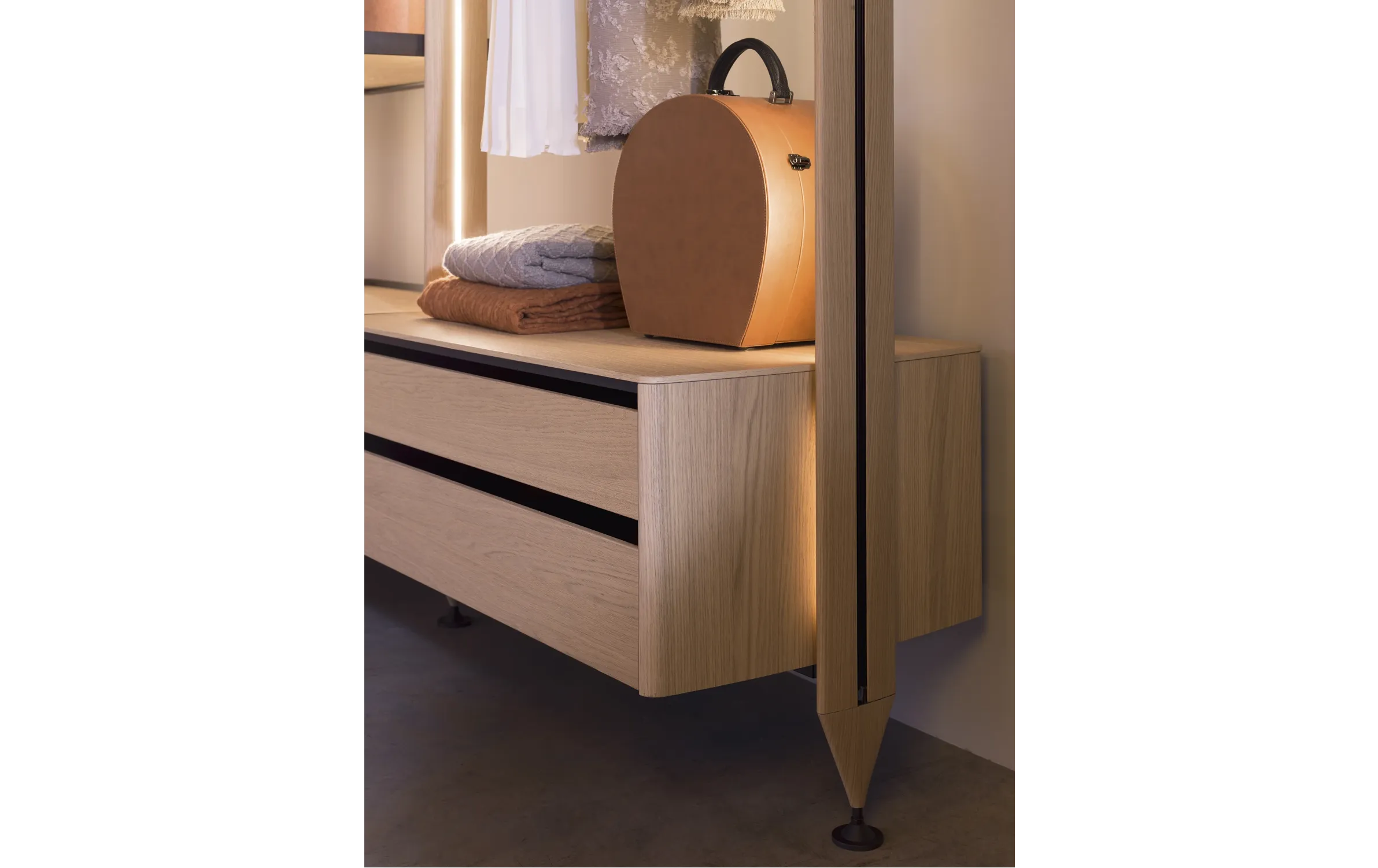 Dedalo Wardrobe — это премиальная модульная гардеробная система от Novamobili, созданная для тех, кто хочет превратить хранение в искусство. На базе той же сверхтонкой конструкции толщиной 25/35 мм система позволяет проектировать полноценные гардеробные комнаты, встроенные шкафы-купе и отдельно стоящие композиции любой сложности: от классических распашных фасадов до бесшумных раздвижных дверей высотой до потолка.