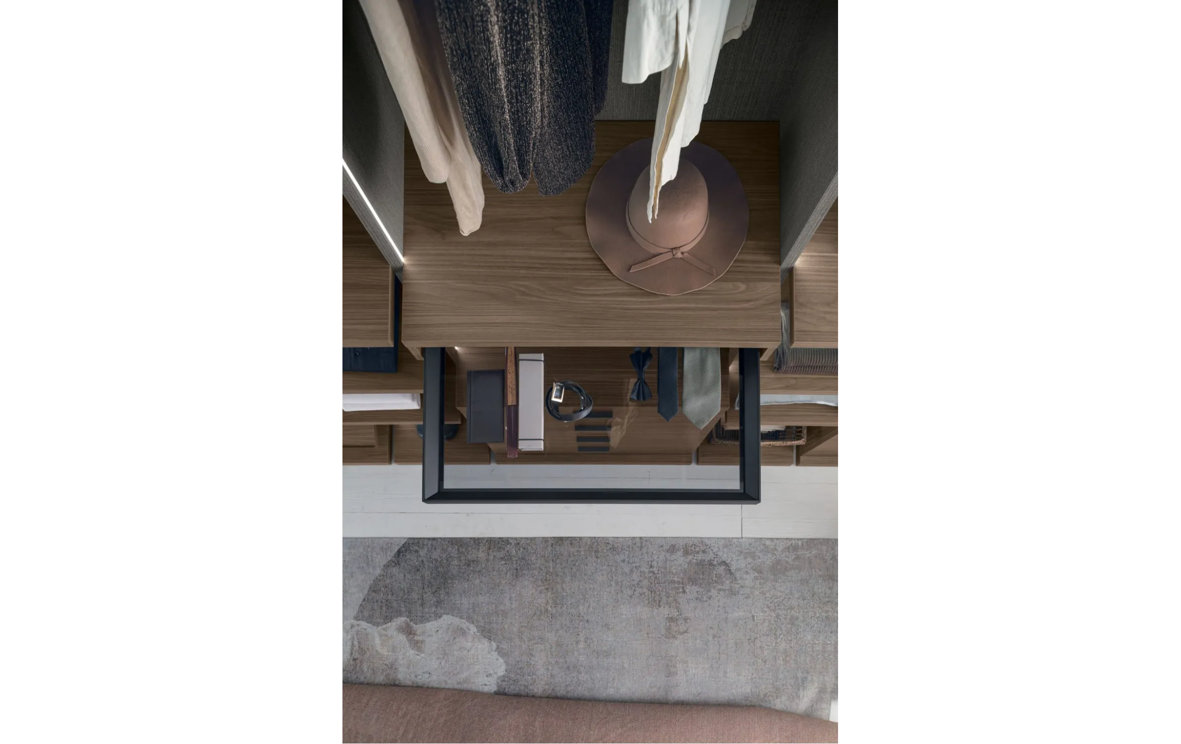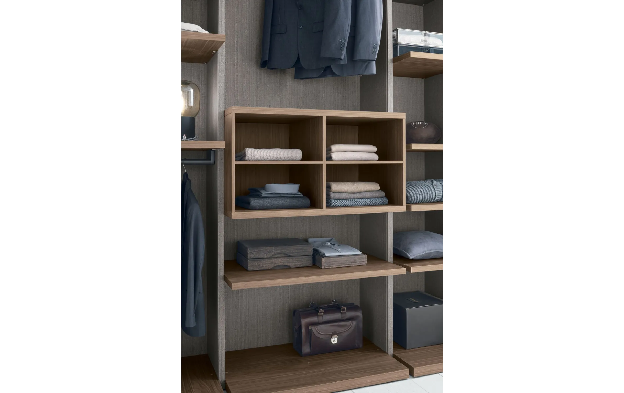 Система состоит из различных элементов: перегородок, полок, выдвижных ящиков и аксессуаров, которые можно комбинировать по вашему желанию, создавая индивидуальное решение для хранения одежды и аксессуаров.