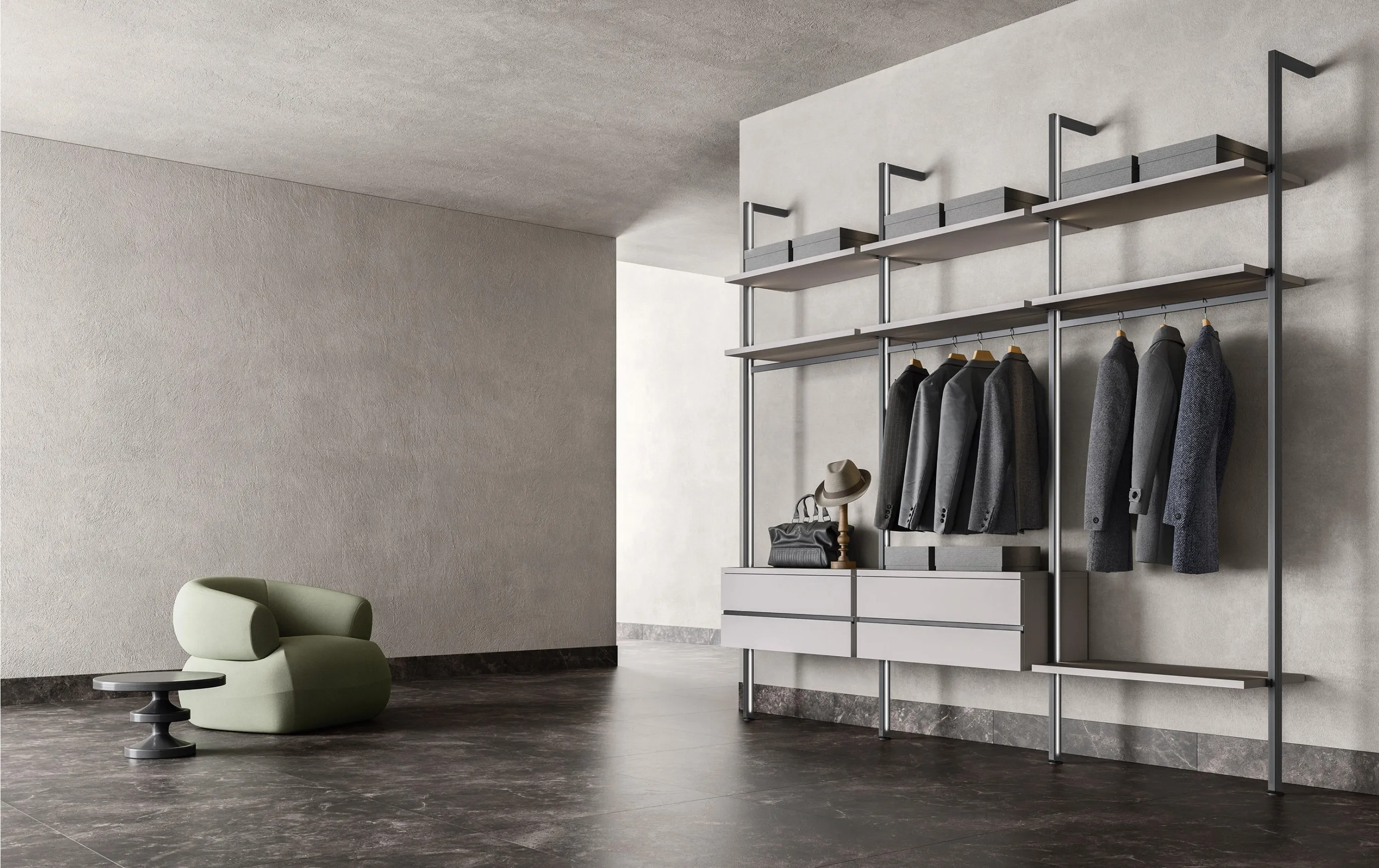 Гардеробная система Windy от итальянского бренда Zalf — это инновационное решение для организации пространства, сочетающее в себе элегантный дизайн, функциональность и высокое качество исполнения. Разработанная дизайнером Roberto Gobbo и студией R&S Zalf, система отличается модульной конструкцией и адаптивностью, что позволяет интегрировать её в различные помещения и стилистические решения.