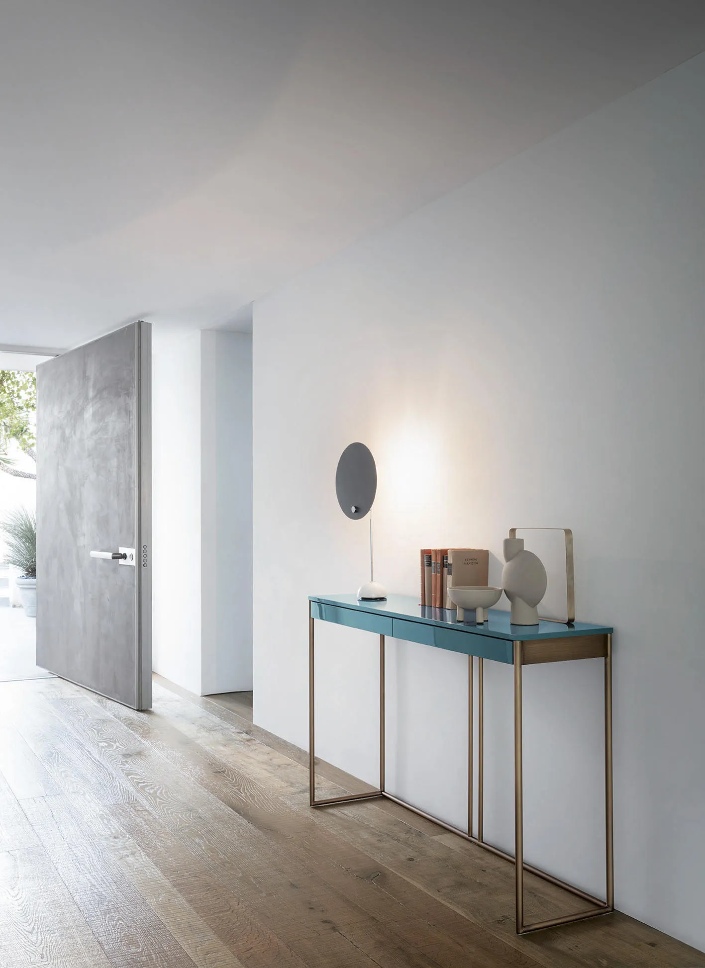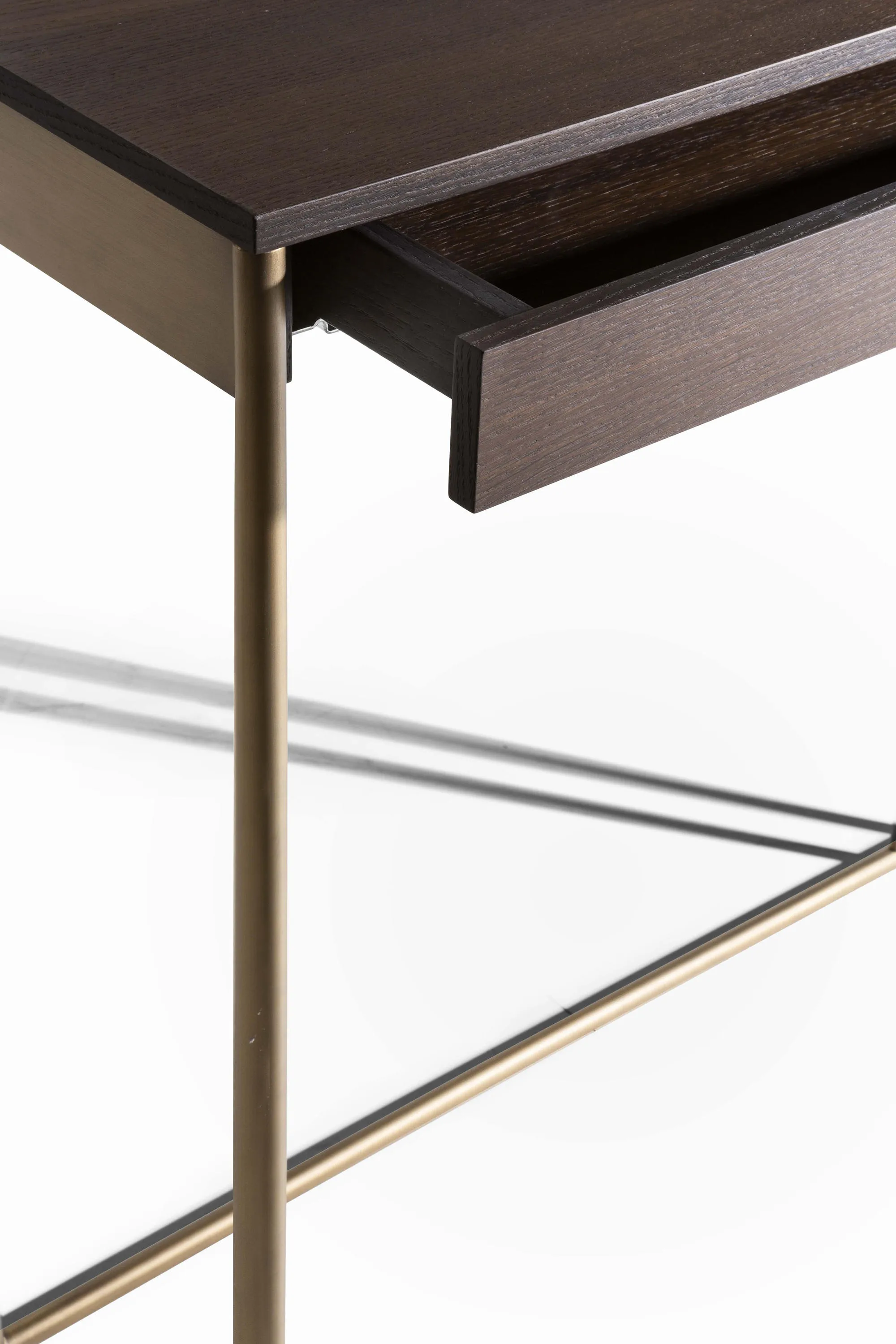 Консольный стол Ella представляет собой сочетание различных материалов, стилей и объемов, что отражает способность дизайнера Дэвида Лопеса Квинкосеса сочетать различные влияния. Чистый стиль дизайна гарантирует, что функциональность остается в центре внимания любого проекта. Благодаря используемым материалам и пристальному вниманию к деталям, этот традиционный предмет приобретает современный дух благодаря контрасту между гладкой структурой из металла с бронзовым покрытием, который кажется почти парящим в воздухе, и массивным столом. столешница с ящиком из термообработанного дуба. Универсальный консольный столик, который можно использовать отдельно или в сочетании с другими предметами, Ella привносит смелую изысканность в любую комнату или проект.
