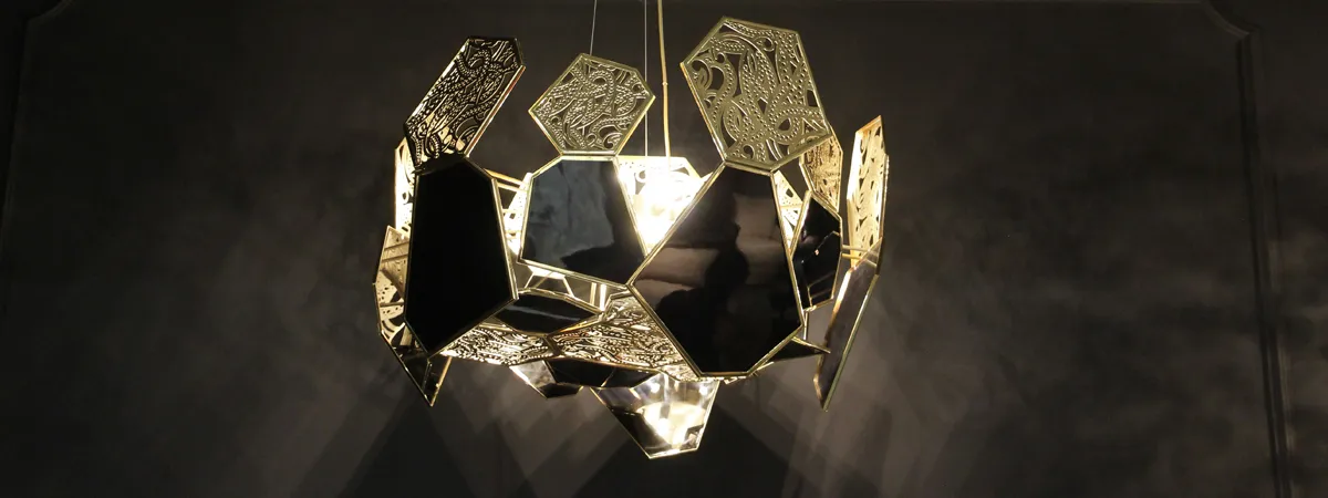 Эта изящная и элегантная люстра завораживает публику. Вы будете очарованы замысловатыми витками и изгибами люстры в золотых спиралях; искусно вплетаясь в четкие полированные линии шестиугольного силуэта. Изящный узор металлических деталей дополняет крашеную деревянную деталь этого изделия.
