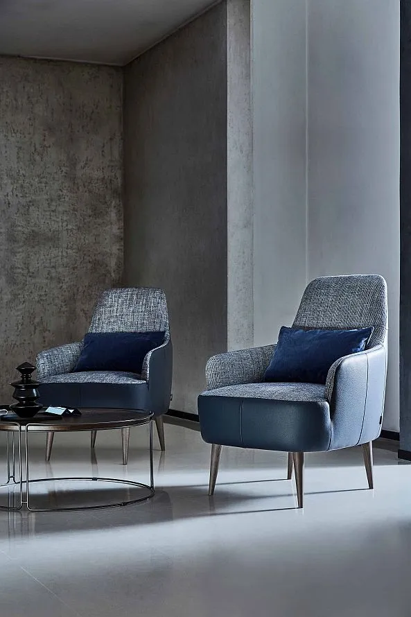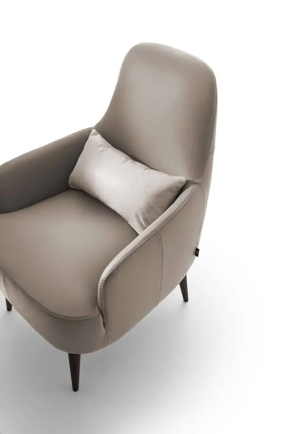 Кресло с мягкими и комфортными очертаниями поддерживается элегантными деревянными ножками, придающими модели изысканный вид, и находится в совершенном равновесии между винтажным духом и современным дизайном.