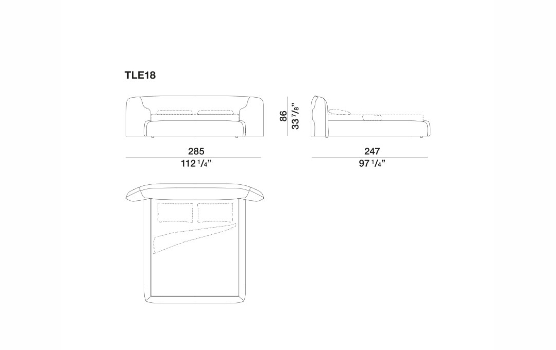 Размеры: 285 х 247 х Н 86 см (спальное место 180 х 200 см).