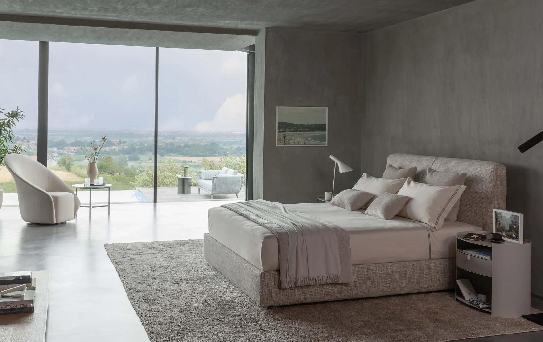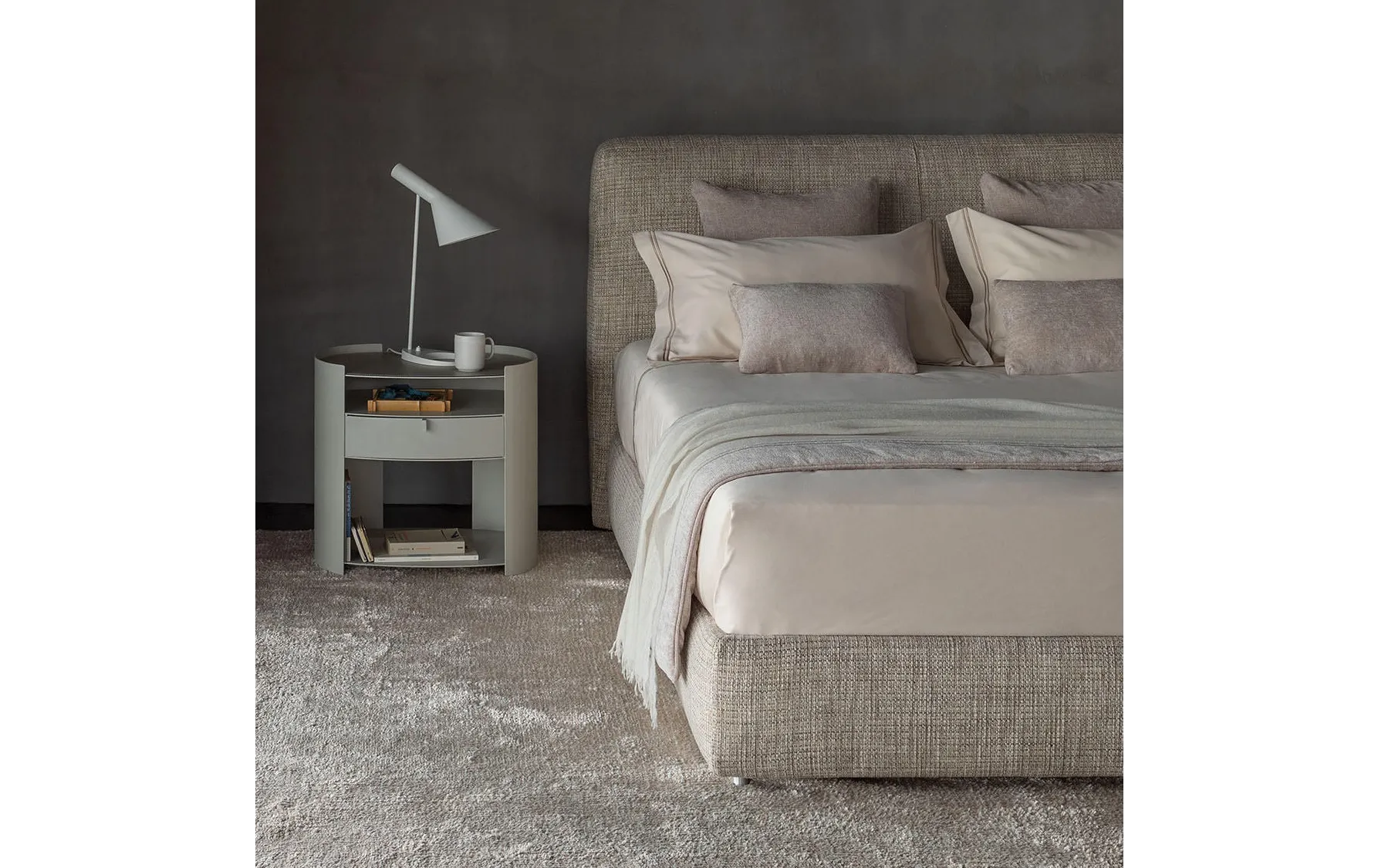Двуспальная кровать с особенно высоким и мягким изголовьем, как будто огромная подушка, на которой можно прилечь и которая может снять любое напряжение. MyPlace — это двуспальная кровать в стиле модерн, переосмысление в современном ключе классической мягкой мебели Flou, чьи сильные стороны кровать MyPlace повторяет и усиливает: великолепное ощущение комфорта и удобства. Сомье мягкое, изголовье высокое, толстое и намеренно богатое набивкой, как огромная подушка, которая может снять любое напряжение. Это кровать с тщательно проработанными пропорциями, которая идеально дополняется матрасами значительной высоты.