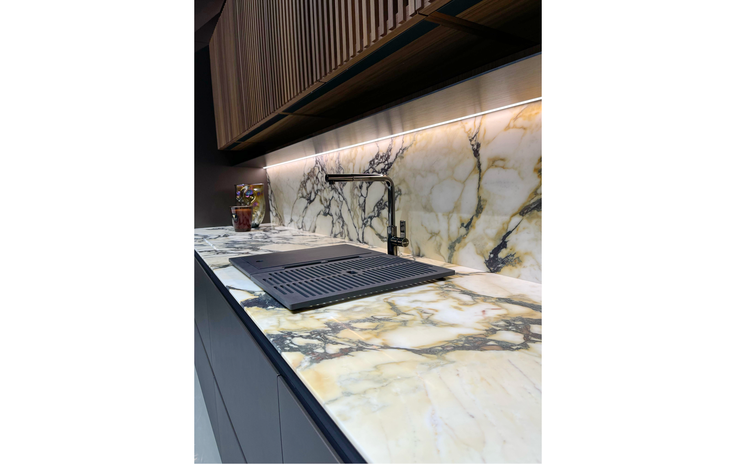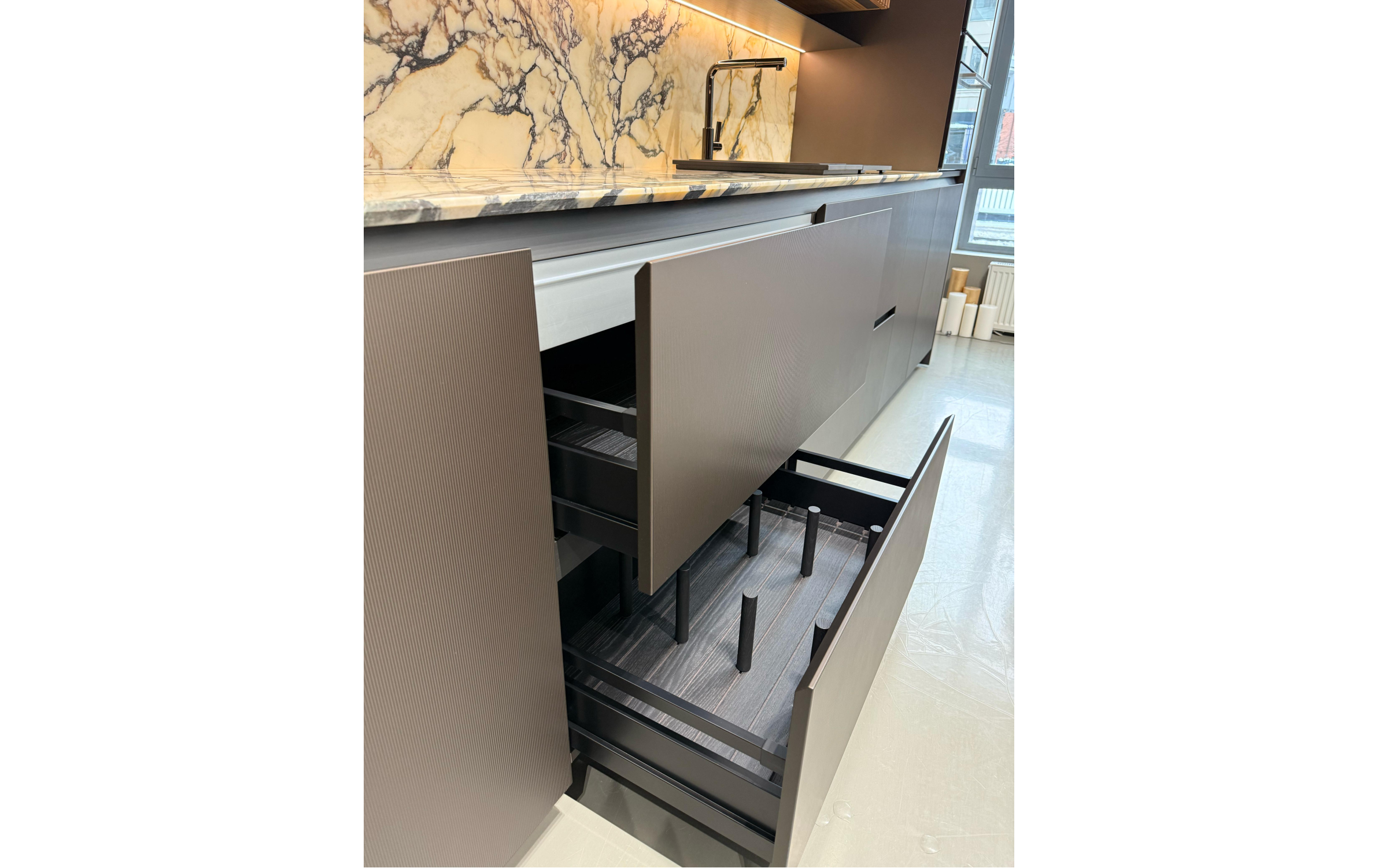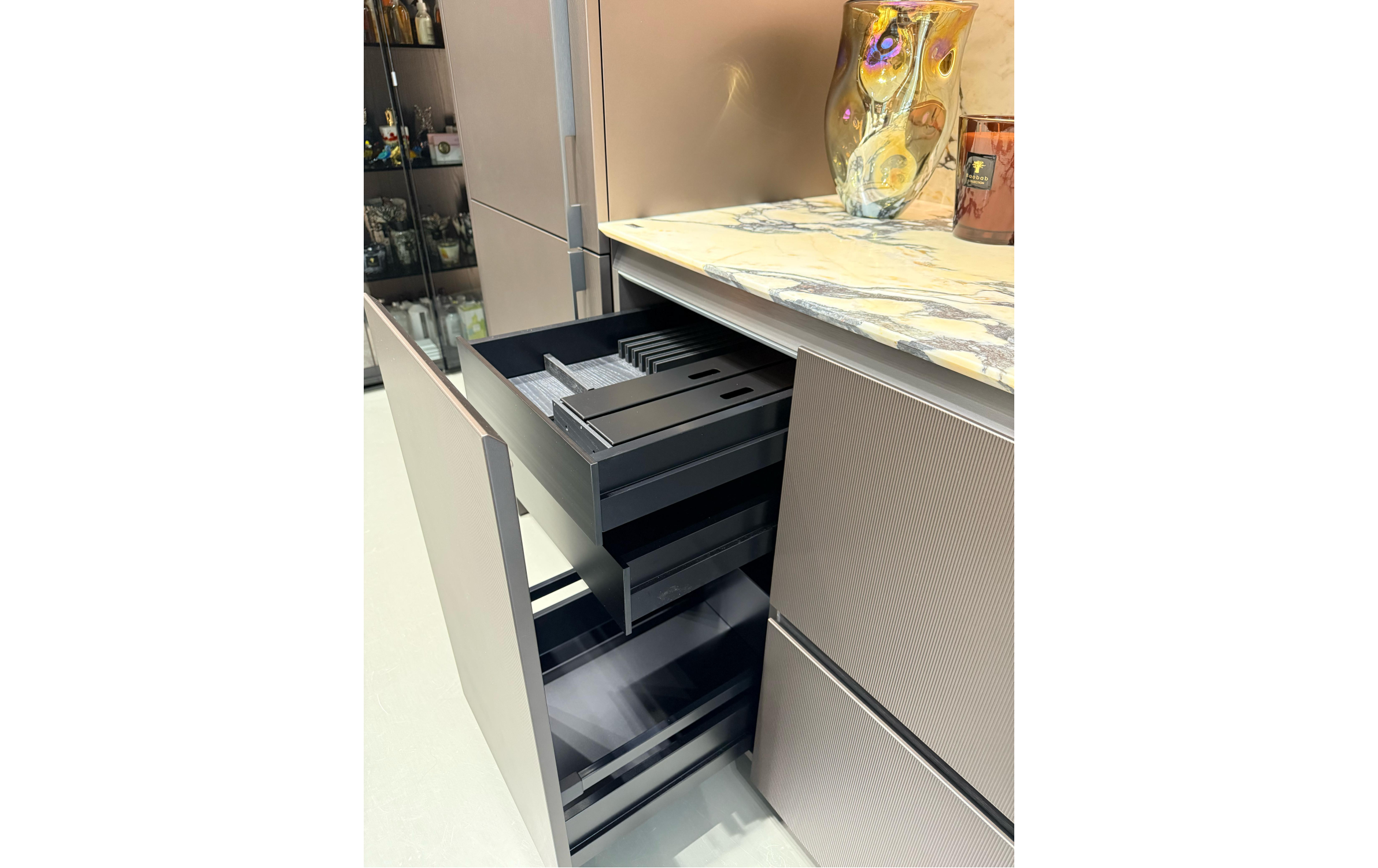 Кухня Prime, разработанная Dada Engineered R&D, наполнена ящиками Vionaro, что делает композицию еще более качественной и функциональной. Эксклюзивный механизм Vionaro с запатентованной черной анодированной алюминиевой отделкой гарантирует исключительную производительность ящиков и практичность.