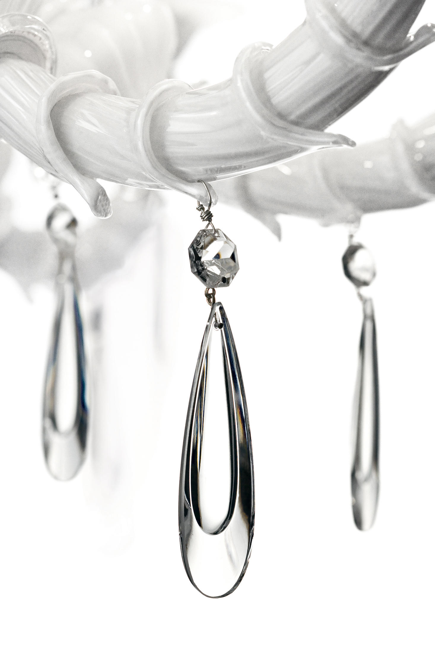 Люстра Dhamar итальянской фабрики Barovier&Toso – роскошная модель, способная украсить любой интерьер. Отличительными особенностями данной модели являются подвески необычной формы в виде вытянутой капли и рифленые рожки из матового муранского стекла ручной работы; а также вытянутые подставки для ламп. На Ваш выбор предлагаются различные варианты исполнения оттенков: белый, черный, серый, фиолетовый, красный, светло-оранжевый, светло-зеленый, голубоватый (bluastro – фирменный цвет Barovier&Toso). Возможны варианты с 6-ю, 9-ю или 12-ю лампами. Металлическая арматура отделана полированным хромом. Люстра Dhamar Barovier & Toso станет настоящим украшением дома и предметом восхищения для хозяев и гостей.