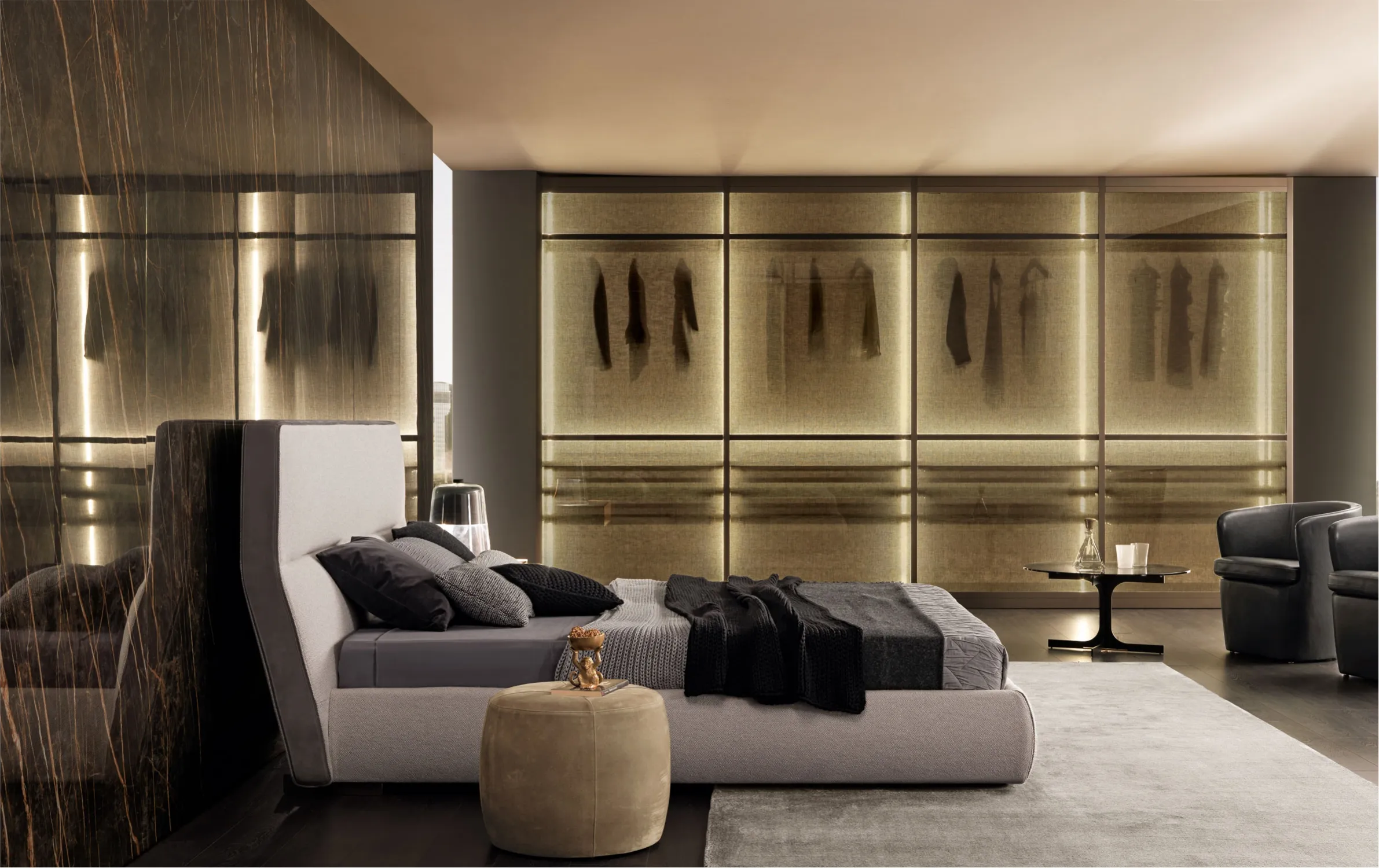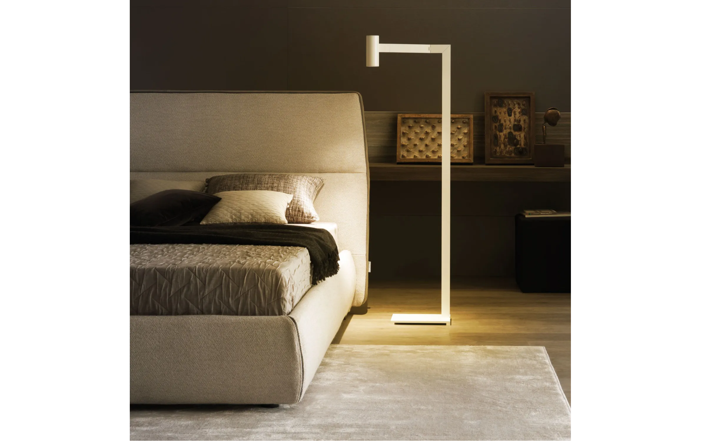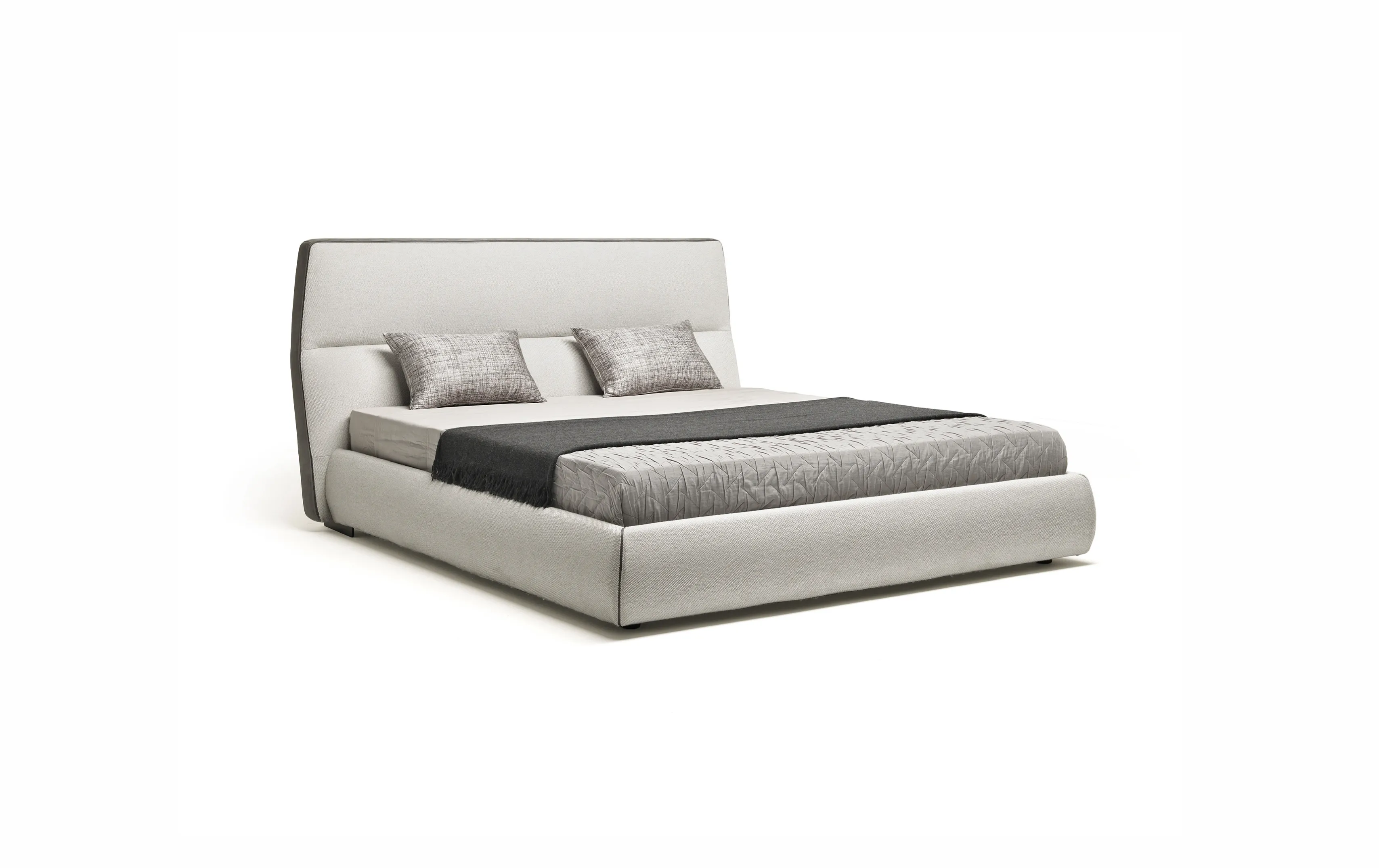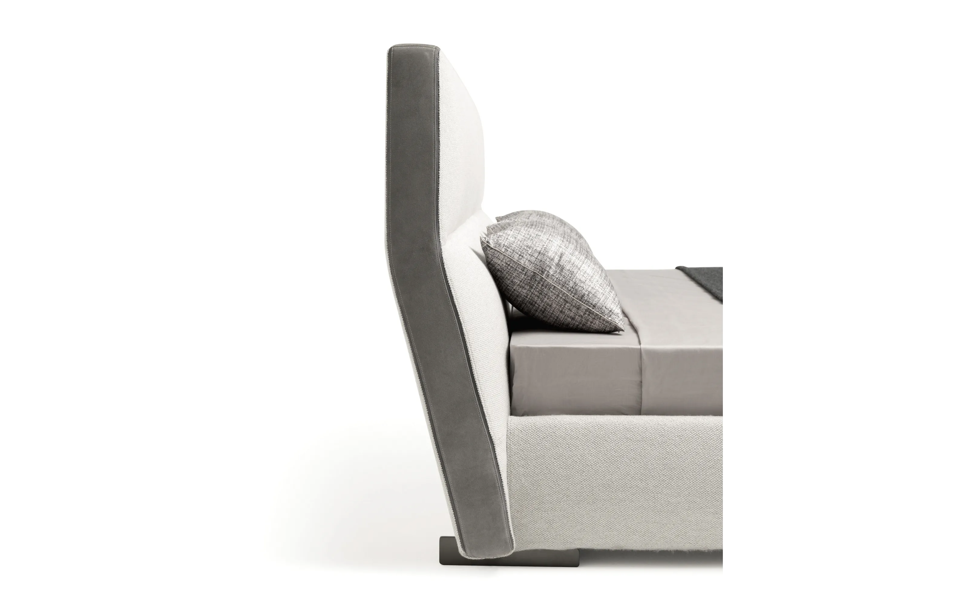 Cosy — это воплощение минимализма, легкости и универсальности в дизайне спального пространства. Лаконичная форма кровати дополнена оригинальным изголовьем с динамичной геометрией и выразительными линиями. Контрастные вставки из замши по бокам акцентируют мягкие очертания конструкции, придавая ей глубину и стиль.