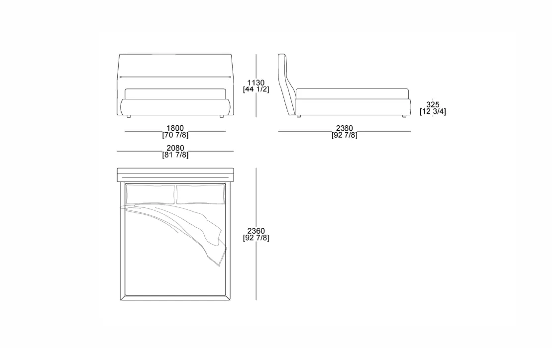 Размеры кровати в наличии: 208 х 236 х 113 см, спальное место: 180 х 200 см.