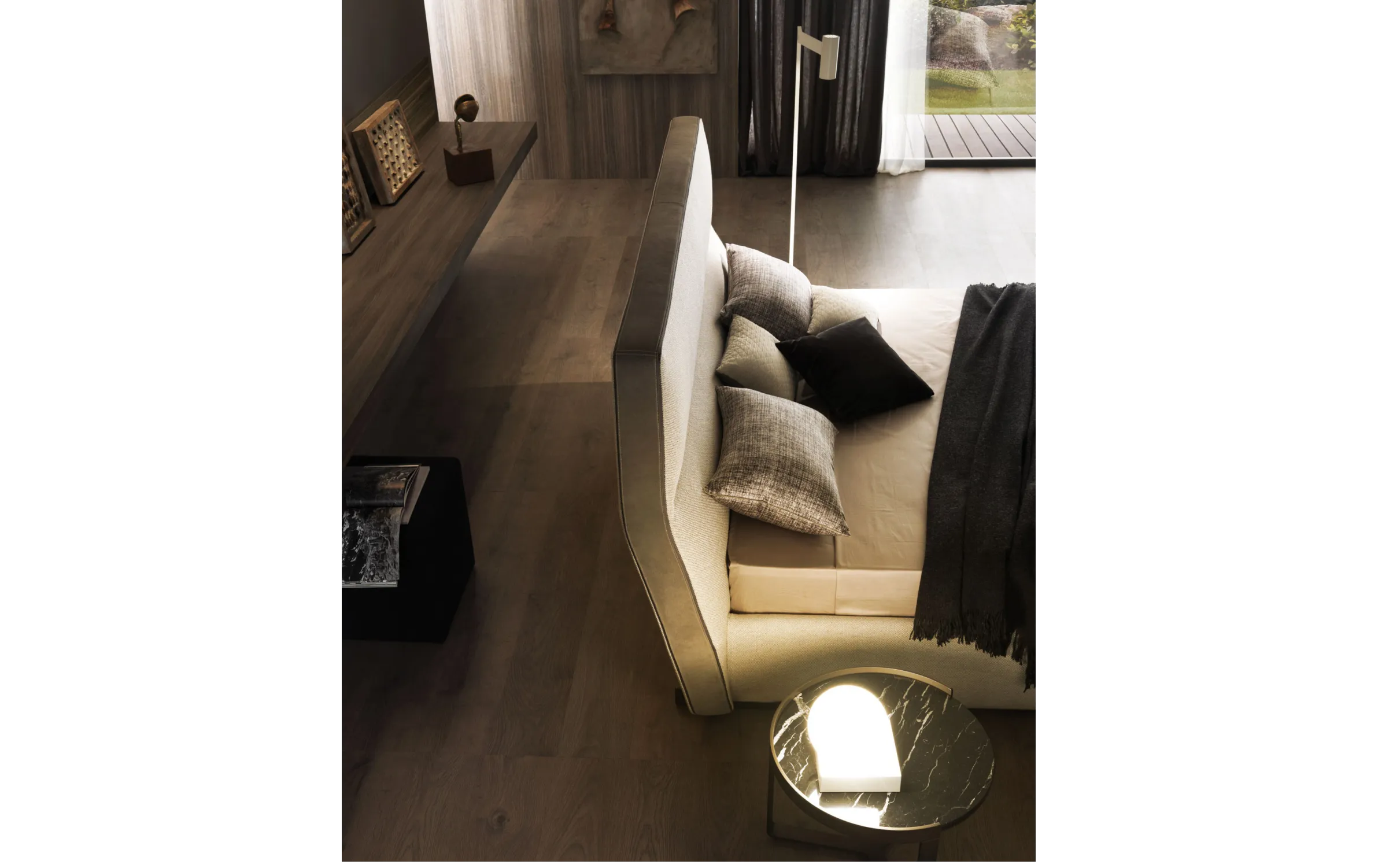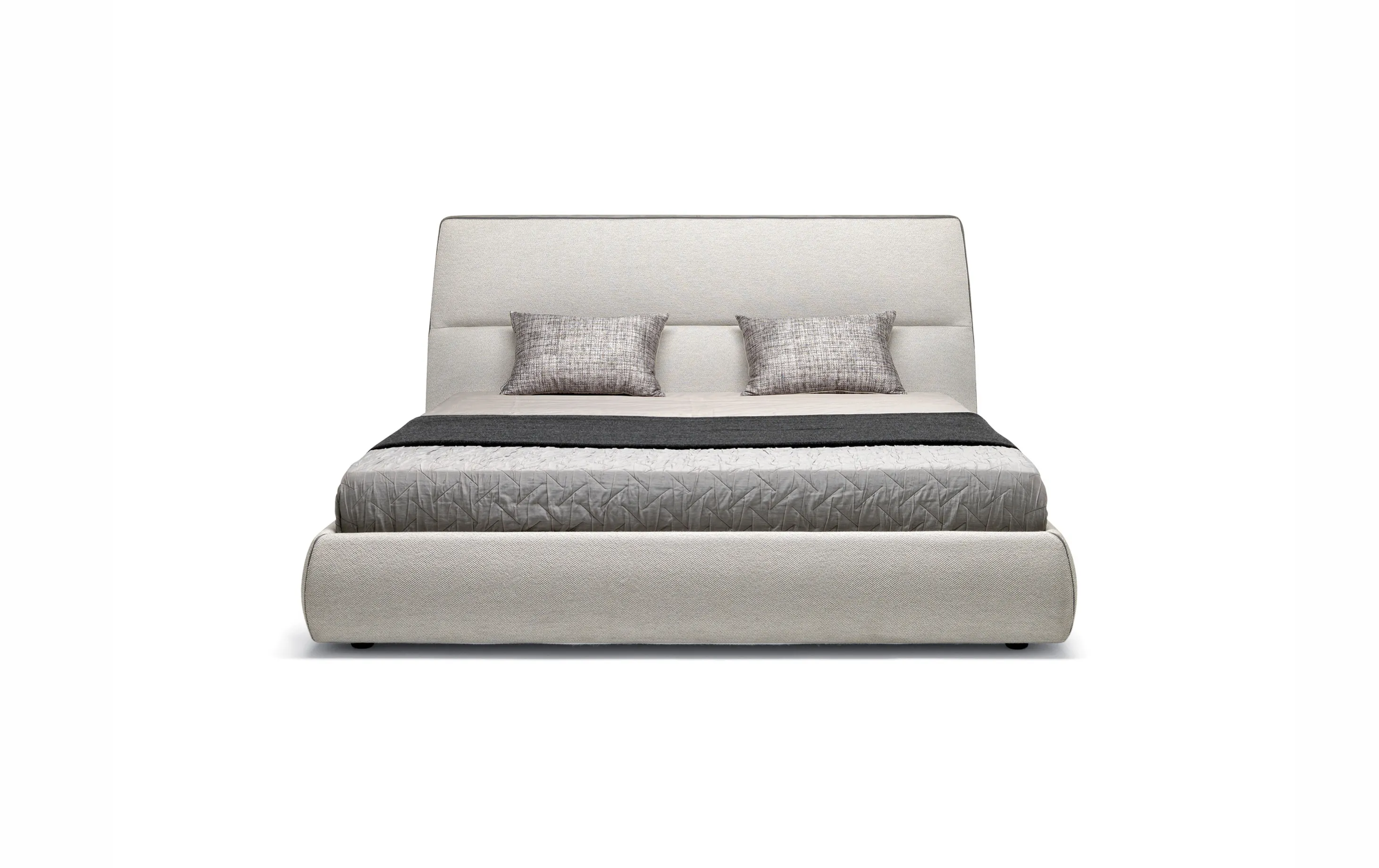 Кровать Cosy гармонично сочетает удобные объемы и премиальные материалы. Обивка может быть выполнена из текстиля, экокожи или натуральной кожи, а возможность комбинирования различных отделок позволяет подчеркнуть индивидуальный стиль интерьера.