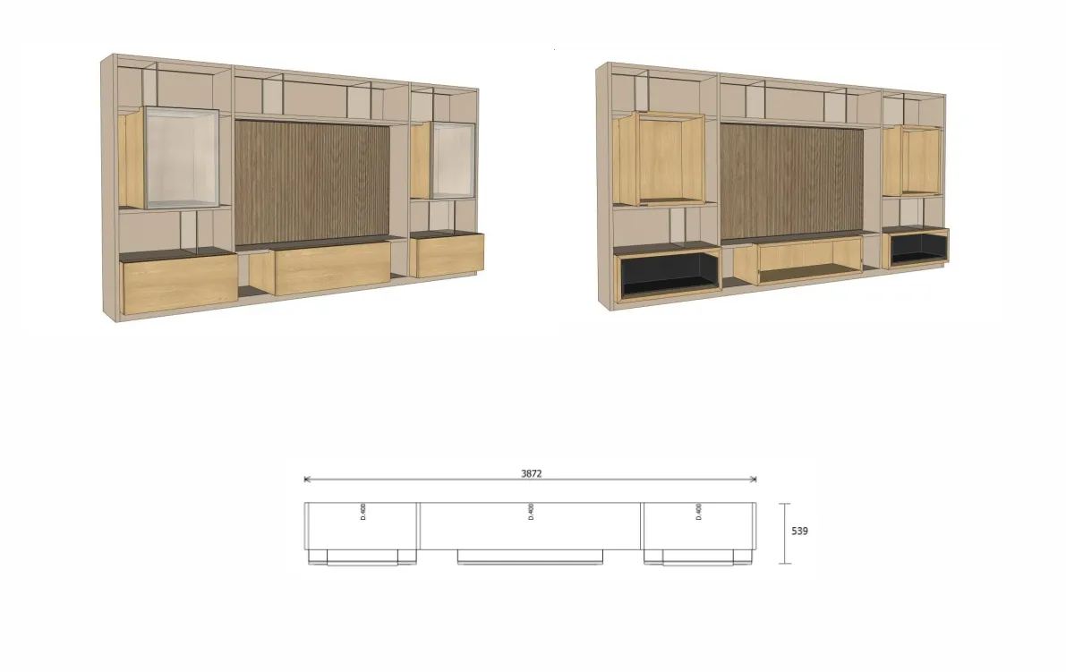 Габариты композиции: длина 3872 мм, высота 2001 мм, глубина 539 мм.