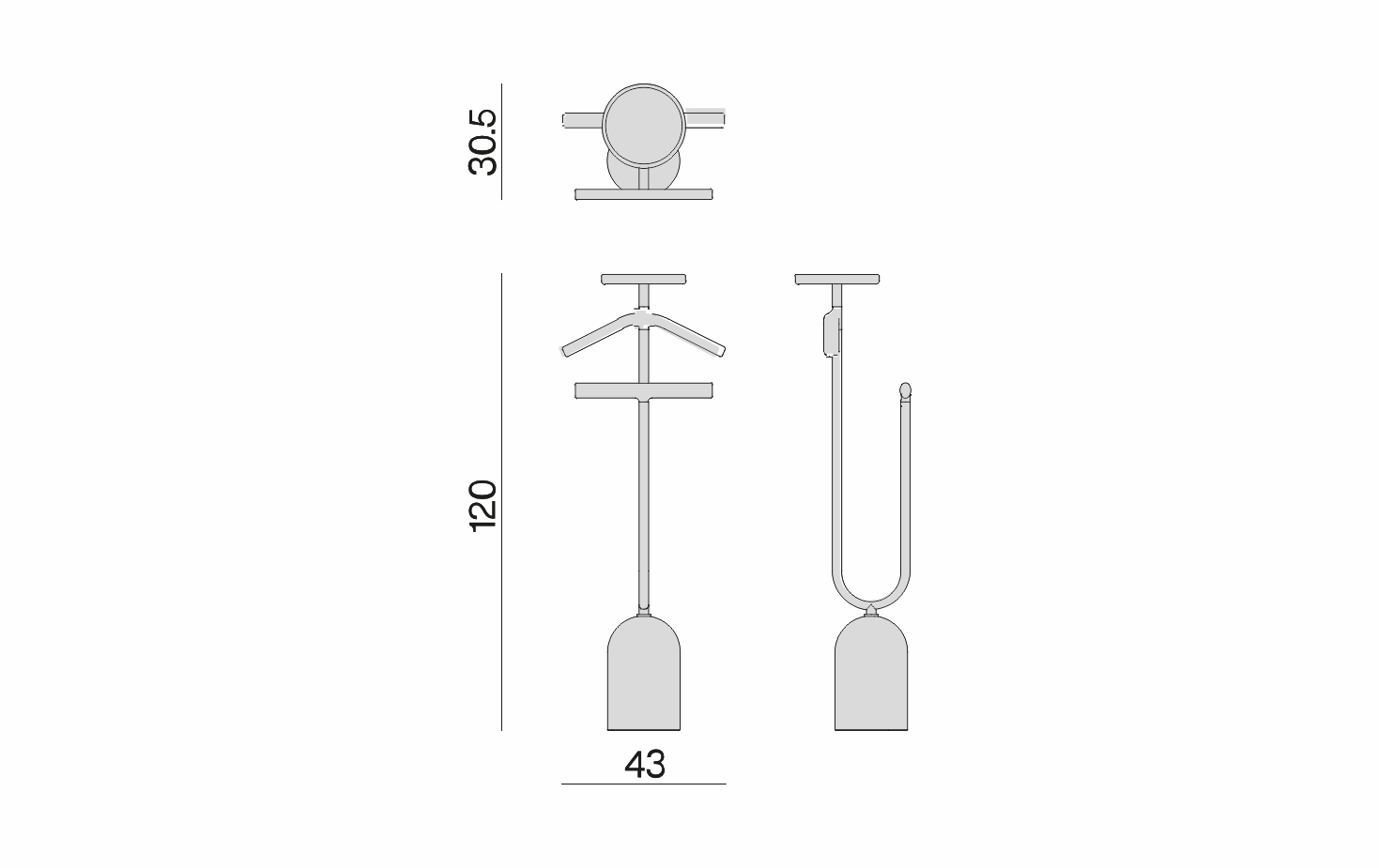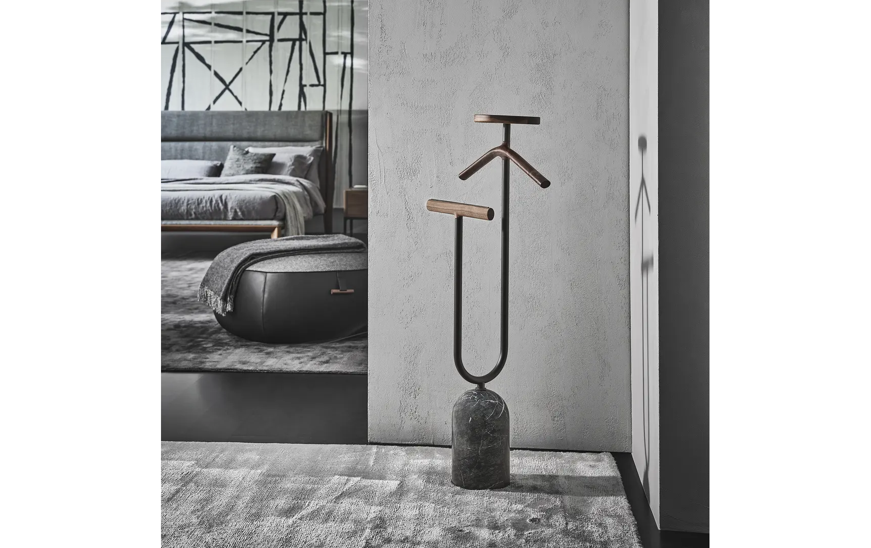 - Функциональные элементы: Вешалка для одежды, брюк с нескользящей серой микрофибровой вставкой и поднос, обтянутый темно-серой кожей.