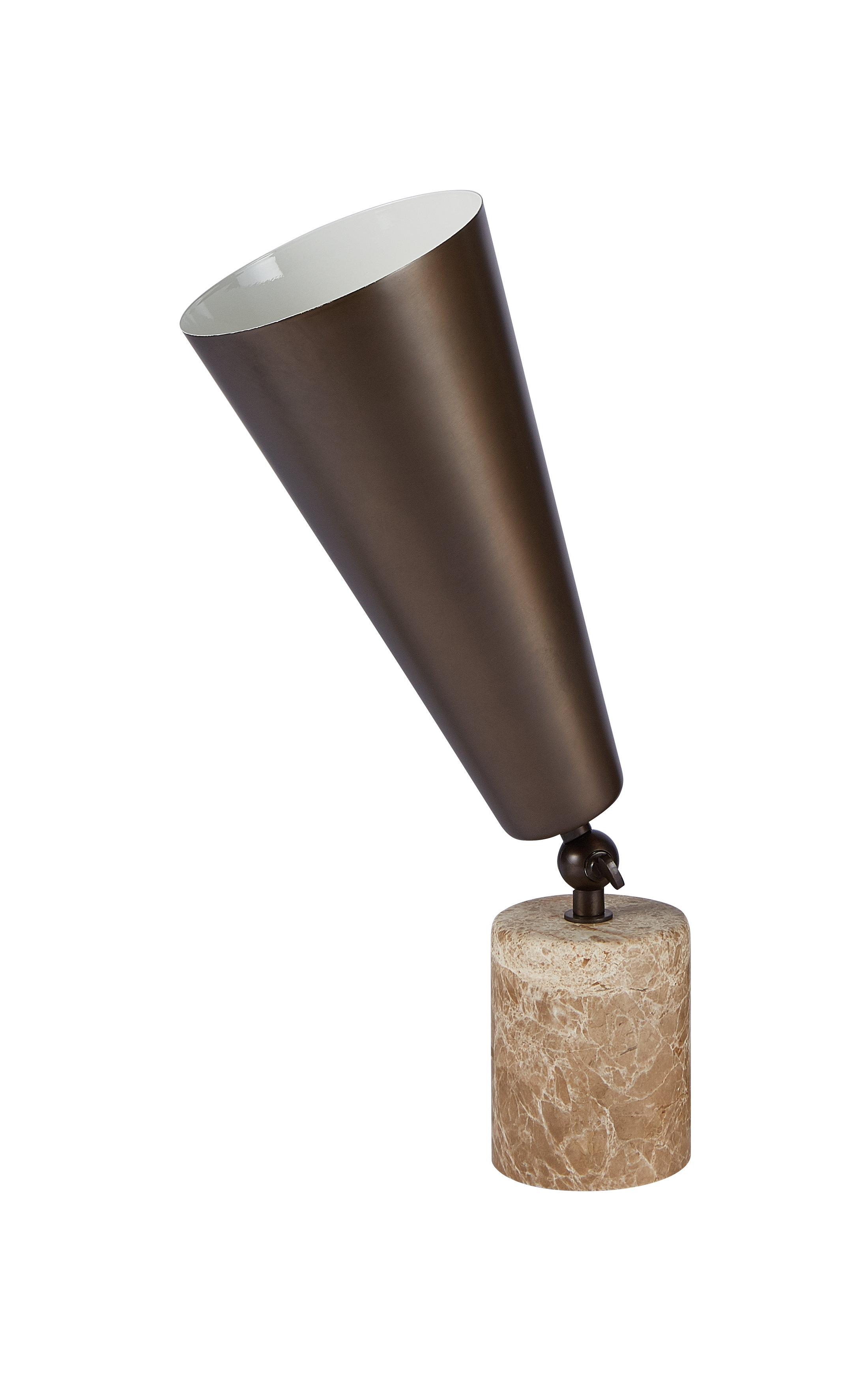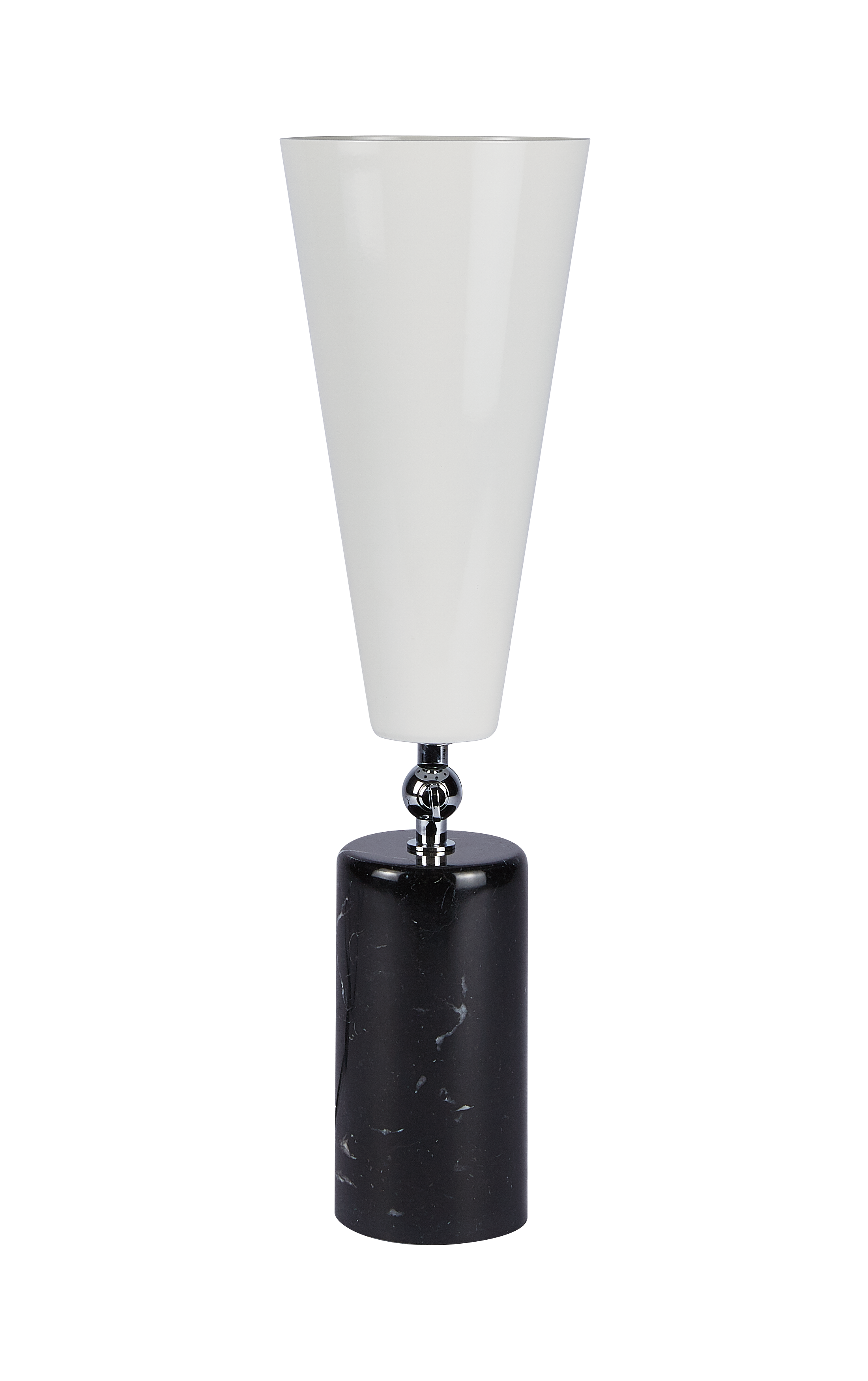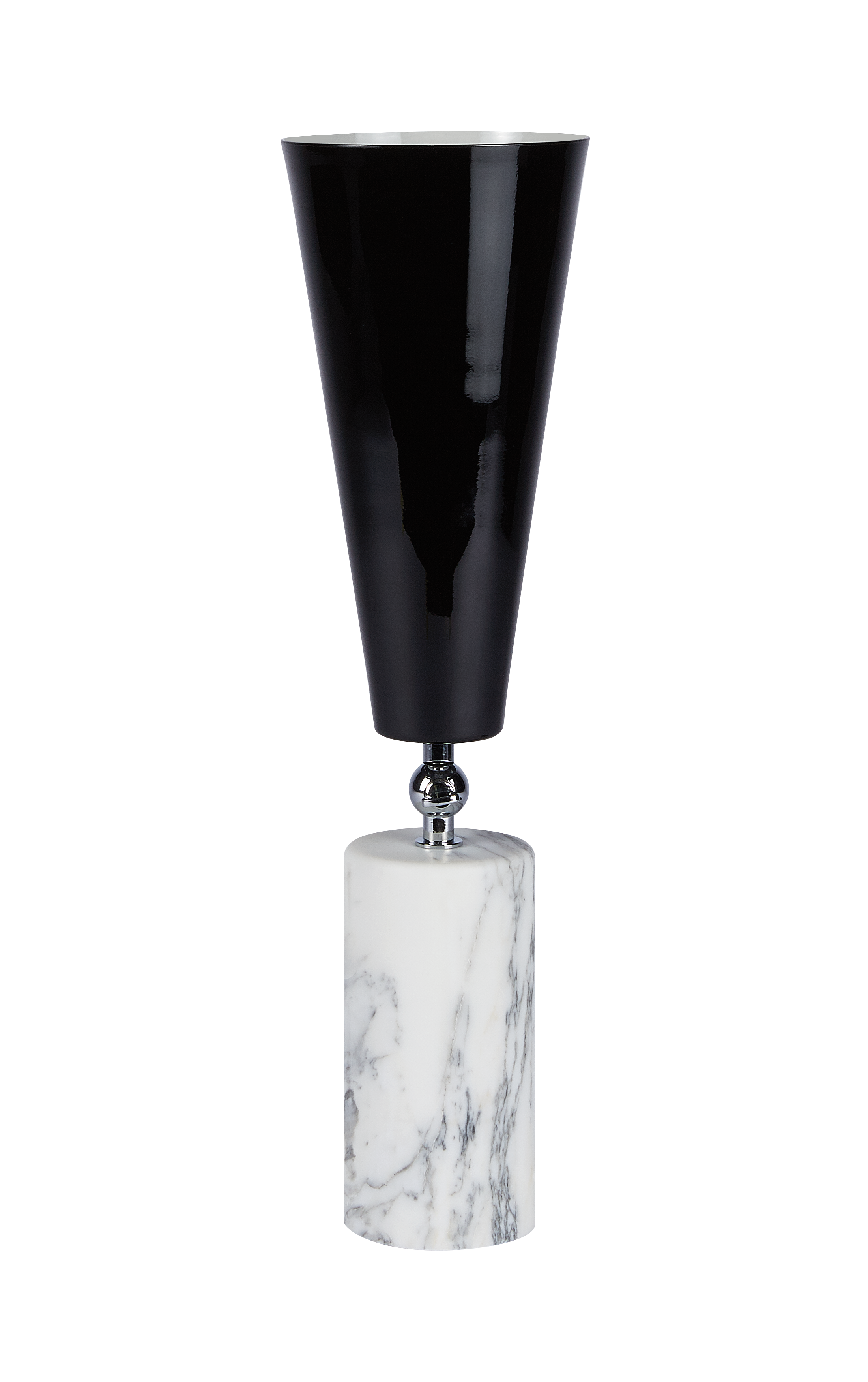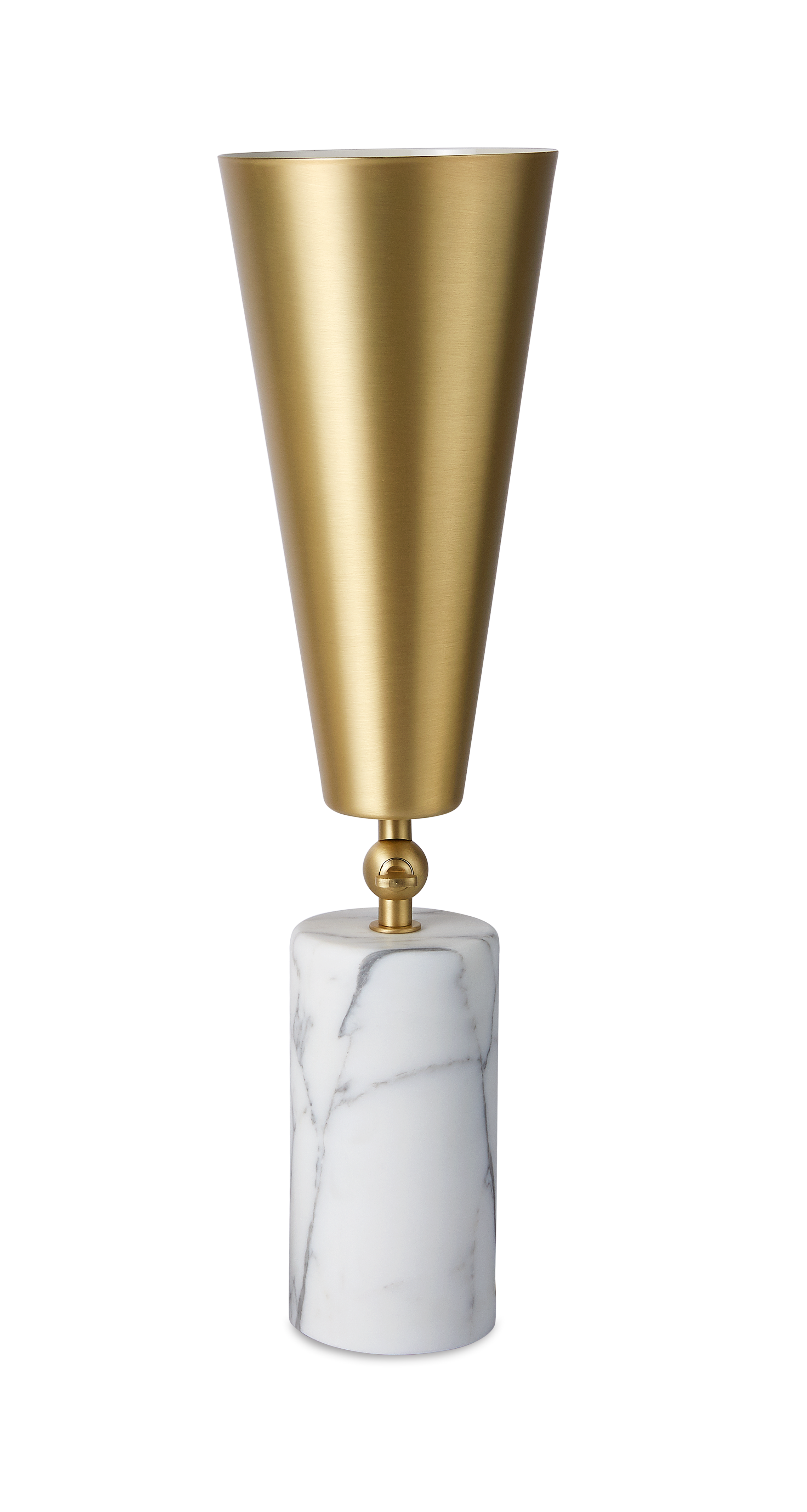 Vox - лампа с театральным призванием. Шарнир позволяет направлять свет в желаемом направлении, чтобы иметь возможность изменять атмосферу домашней сцены по своему желанию. Форма абажура напоминает старые граммофоны, отсюда и название. Основание из драгоценного мрамора делает его практичным и надежным.