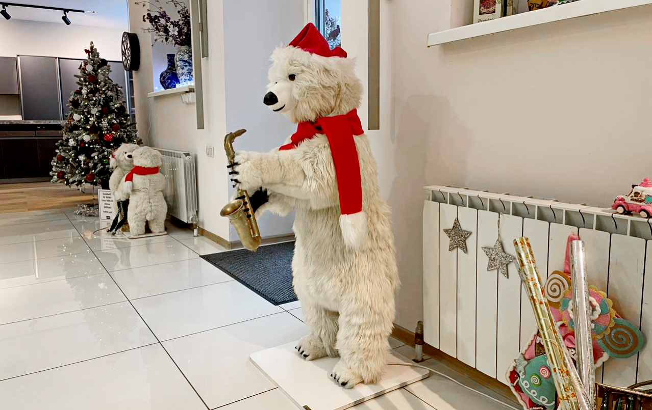 - Анимированная фигурка "Белый медведь с саксофоном" идеально подходит для: