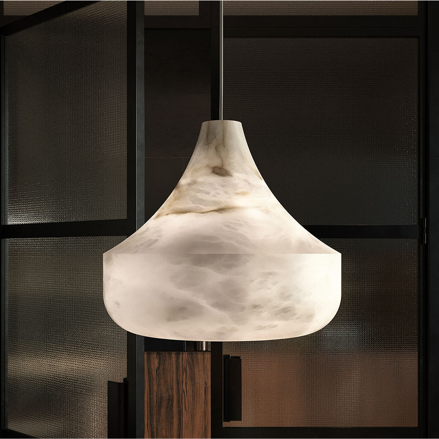 - Алебастровая эстетика: Прозрачность и уникальные прожилки алебастра создают живую игру света, делая каждый светильник уникальным.