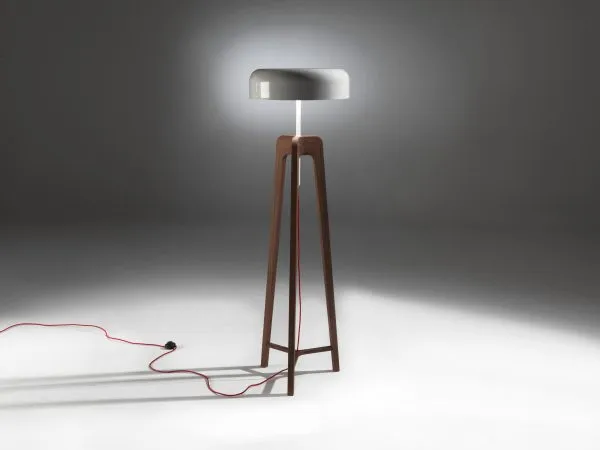 Торшер из массива ореха каналетта или ясеня; а абажур из стекла или металла.