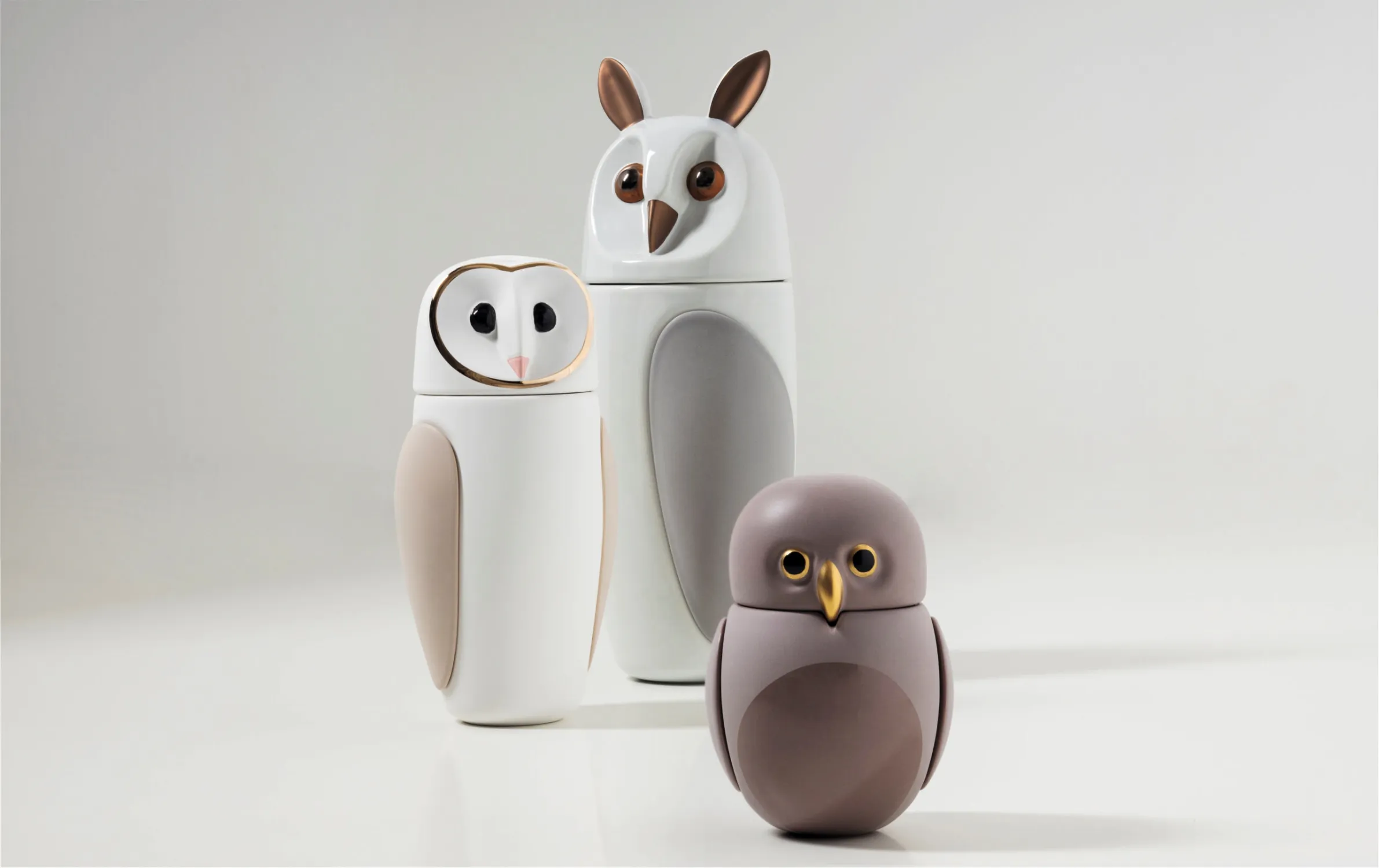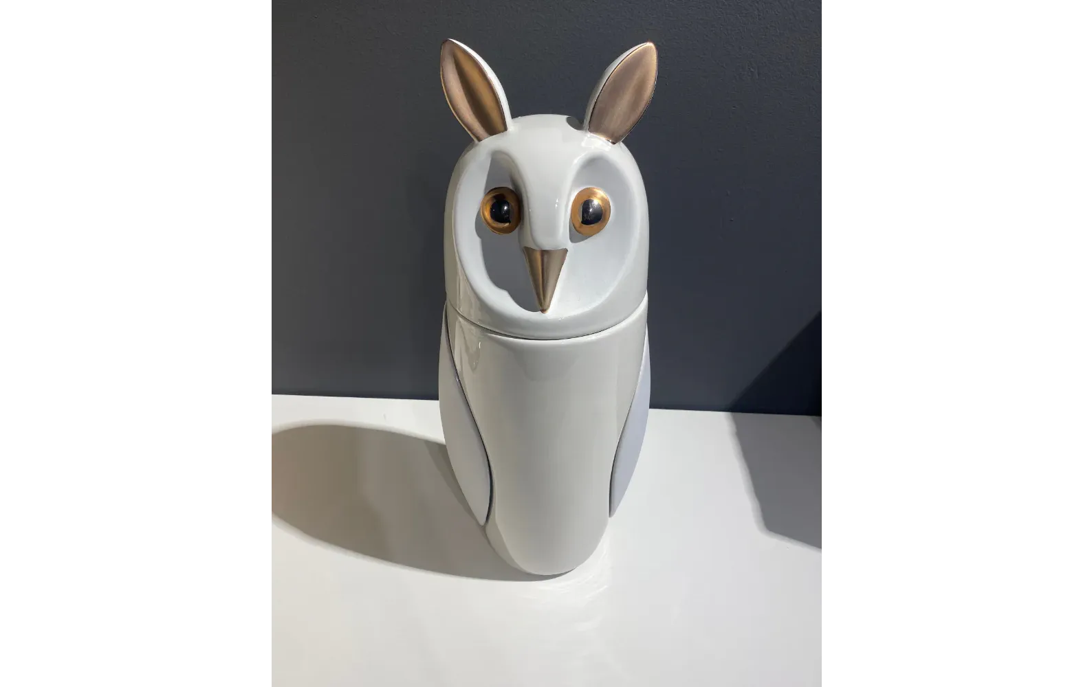 Каждое изделие выполнено вручную из белой керамики, а сочетание глянцевого светло-серого и матового серо-каменного оттенка придает объекту дополнительную глубину и выразительность. Тонкие линии, плавные формы и проработанные детали создают эффект легкости и динамики, подчеркивая природную красоту совы.