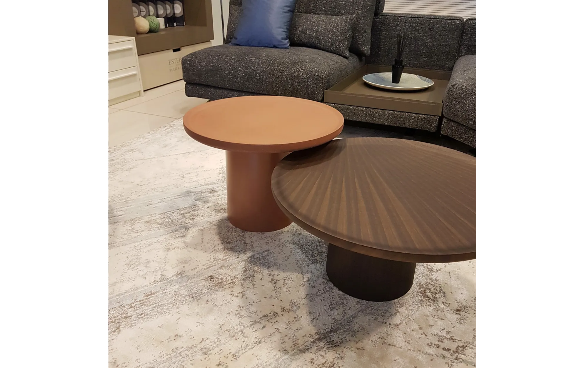 Винсент Ван Дуйсен разработал серию LOUISA – набор круглых и овальных журнальных столиков, в которых присутствие дерева и цемента создает новаторский тактильный и эстетический эффект. Несущая конструкция – конический центральный цоколь – поднимается с пола и вставляется в специальное углубление в столешнице. Поперечные объекты, комбинируемые по желанию, просто, легко, элегантно: квинтэссенция современного дизайна. Столешницы, немного похожие на подвесные подносы, изготовлены из ясеня, кирпично-красного цемента или дерева эвкалипта и имеют оригинальный радиальный мотив, достигнутый с помощью специальной процедуры соединения плит. Основание изготовлено из гнутой фанеры со шпоном эвкалипта или из гнутого листового металла, окрашенного в оловянный или кирпично-красный цвет.