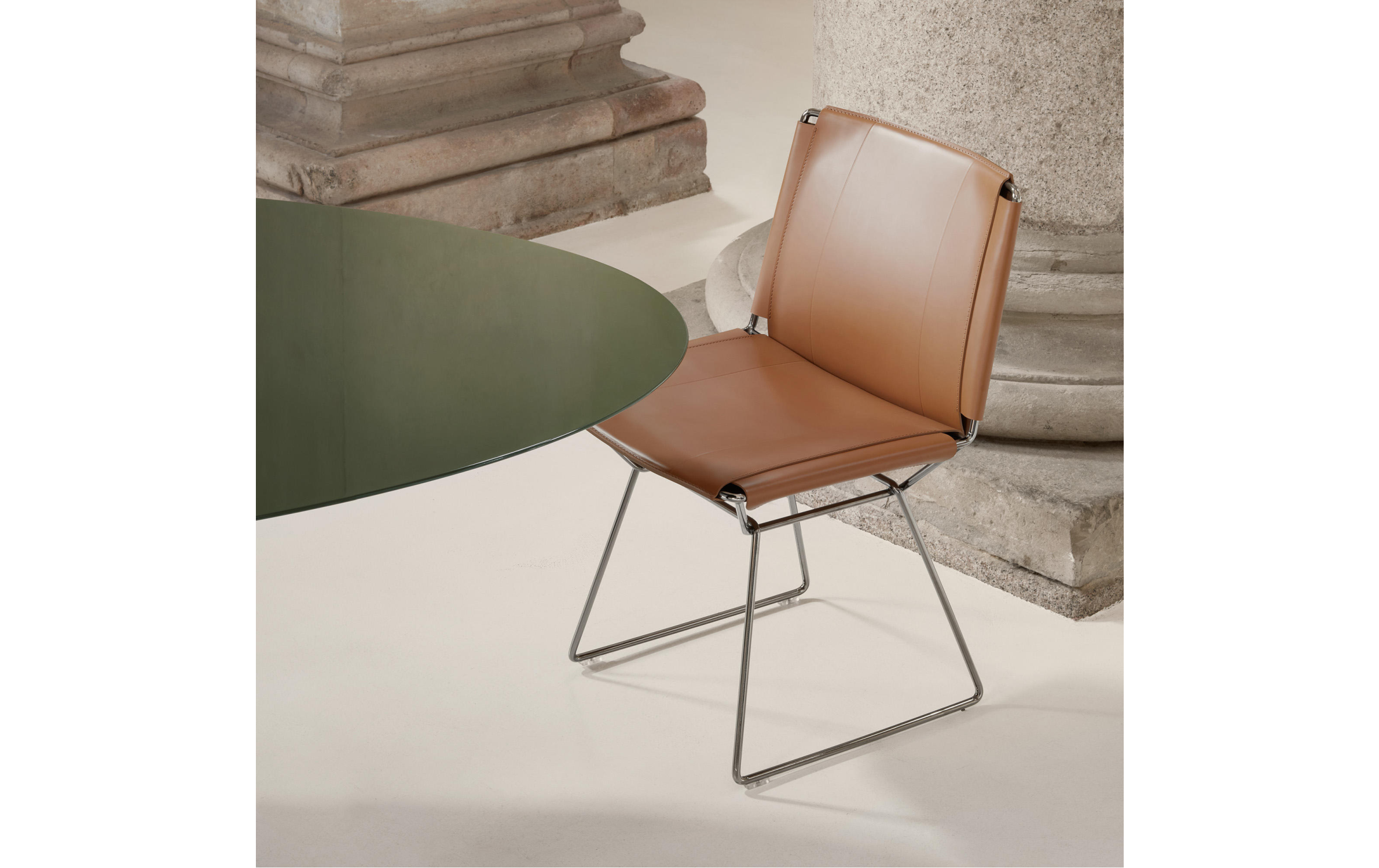 Каркас: хромированный металл. Отделка: матовая седельная кожа.