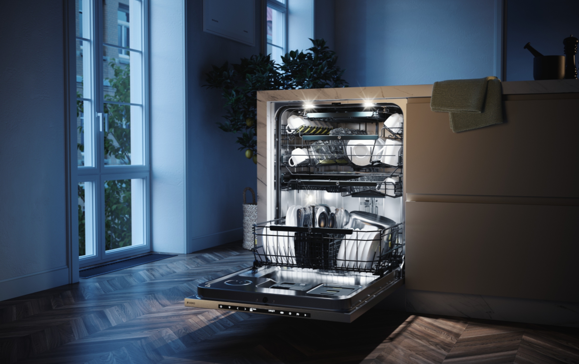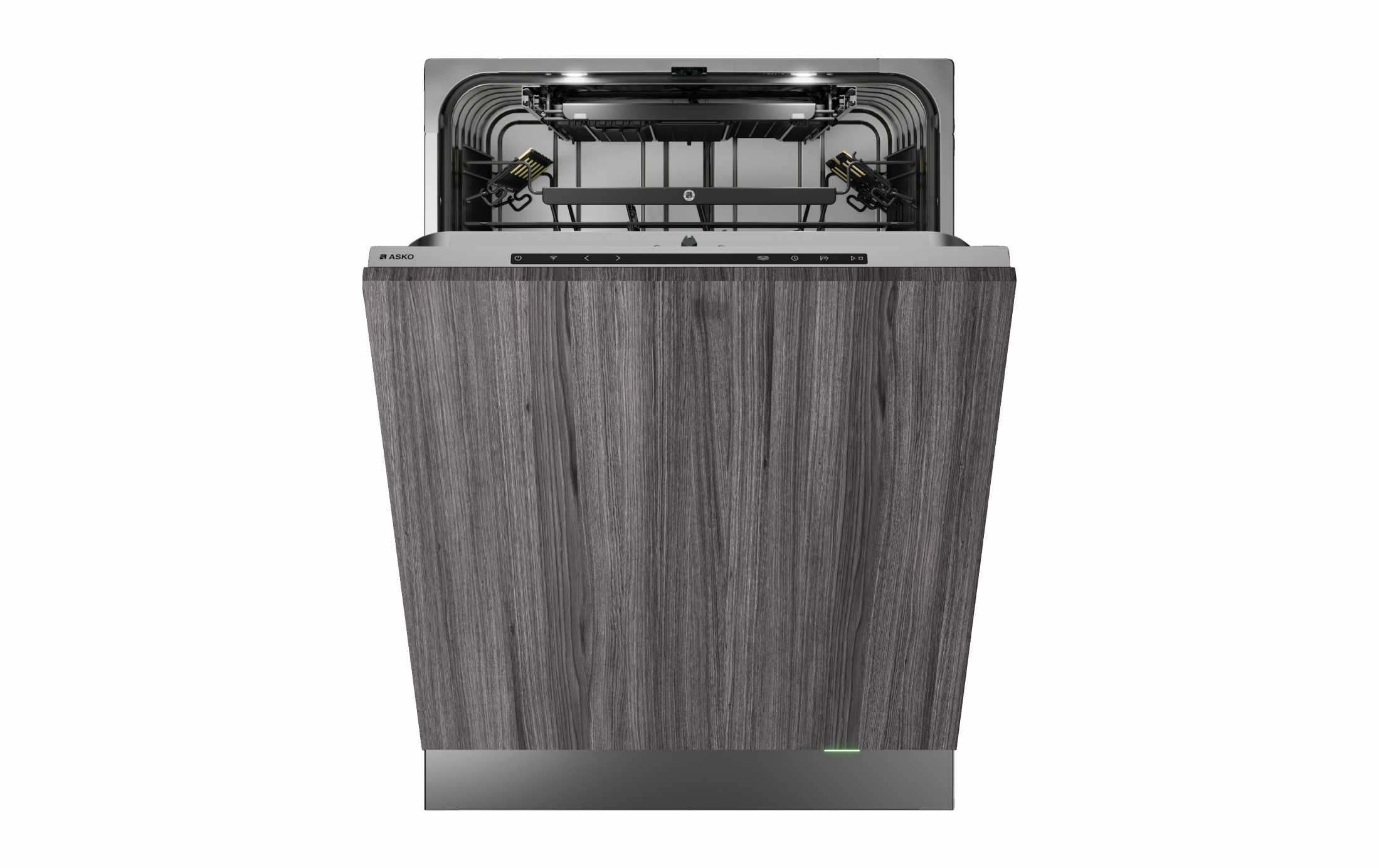 За счет подачи теплого воздуха в конце цикла капли воды быстро удаляются с поверхности, не оставляя разводов. По завершении дверь открывается автоматически благодаря контролю специальных датчиков. Внутри установлено четыре светодиодные лампы для полноценного освещения, чтобы вы могли проверить состояние посуды при необходимости.