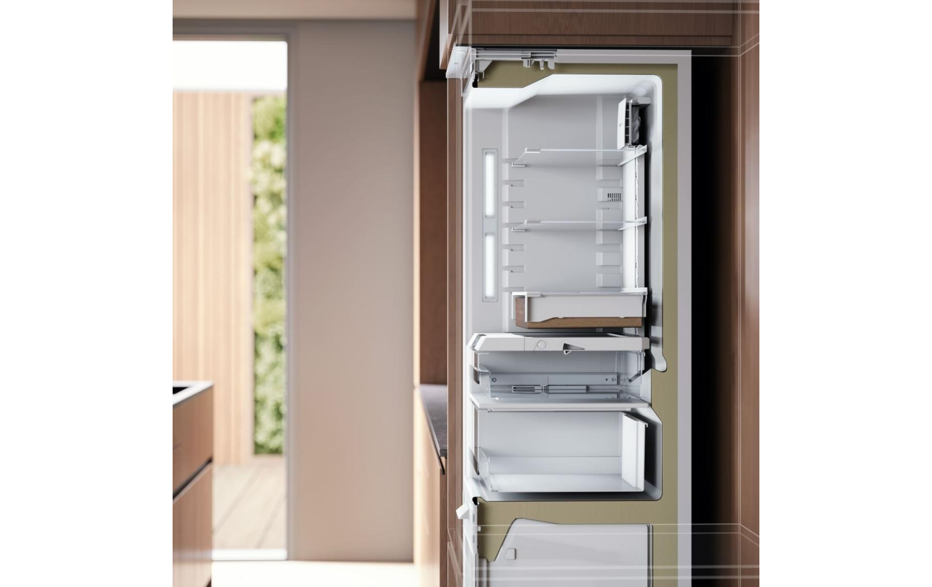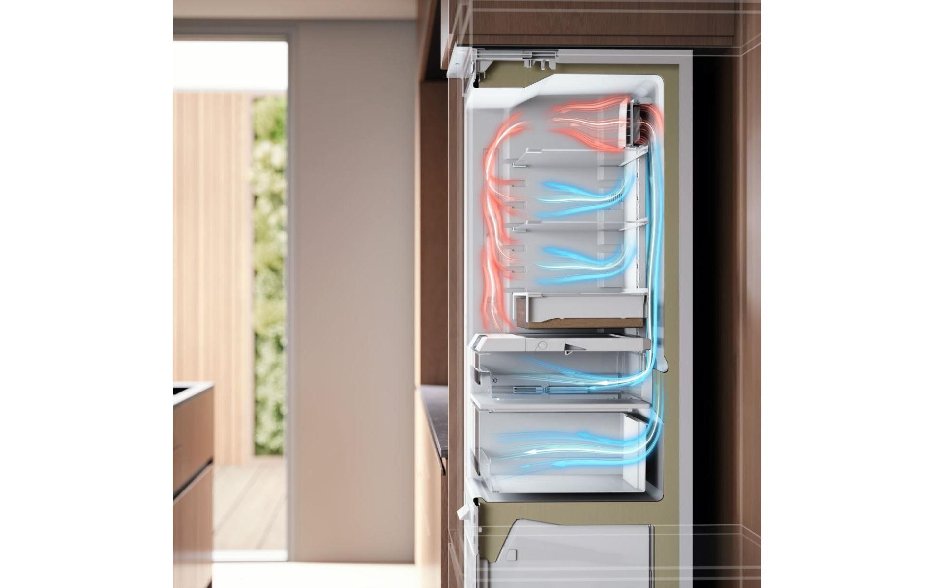 Встраиваемый двухкамерный холодильник с большим объемом 226 л и перенавешиваемыми дверьми. Удобное сенсорное управление позволяет легко устанавливать нужную температуру. Система No Frost устраняет необходимость в разморозке, а также экономит электроэнергию. Зона свежести DuraFresh™ с независимым температурным режимом создает идеальный микроклимат для хранения мяса, рыбы и овощей. Адаптивный контроль автоматически регулирует температуру, отслеживая привычки пользователя: температура снижается в периоды частого использования прибора, тем самым сохраняя продукты свежими на 20% дольше. Деревянные аксессуары выполнены из бука и предназначены для длительного использования.