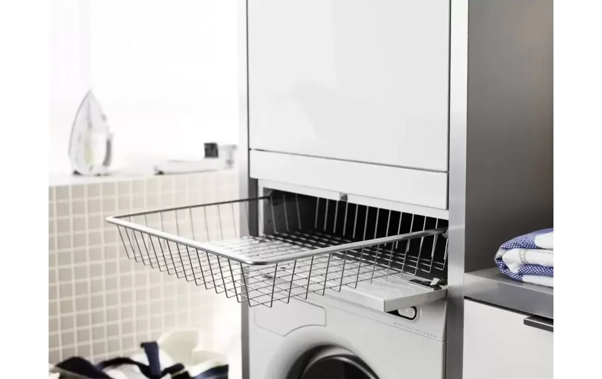 Hidden Helpers™ — выдвижная корзина с открыванием push-pull, которая легко вынимается. Предназначена для установки в колонну между стиральной и сушильной машиной. Это оптимальное решение для извлечения белья, его сортировки и переноса к месту хранения или глажки. Корзина Asko HB1153W станет отличным дополнением для домашней прачечной даже в небольшой квартире. Она может быть установлена вместе только с определенными моделями устройств из серий Classic Pro Home и Logic Pro Home — например, стиральных машин W2084*, W2086*, W4086*, W4096*, W4114* и сушильных машин T208*, T408*, T409*, T411*. Ширина и глубина 60 см и высота 15 см соответствуют стандартным габаритам большинства стиральных и сушильных машин. В комплекте установки имеется противоопрокидывающее устройство и набор крепежа, которые позволяют установить аксессуар максимально ровно и надежно его закрепить. Корзина достаточно объемна, вмещает белье большого размера. Модель изготовлена из прочной нержавеющей стали — материала, максимально устойчивого к коррозии и не боящегося воздействия влаги, а также механических воздействий. Наружная часть корзины выполнена в классическом белом цвете, который будет уместен в ванной любого стиля. Гладкая поверхность гарантирует безопасное использование, а также удобную очистку. Для извлечения корзины достаточно потянуть ее на себя. Чтобы снять корзину с направляющих, необходимо приподнять ее за переднюю часть.
