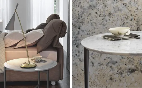 Простые и универсальные столики Iko можно использовать в любой комнате дома как дополнительные столики или прикроватные столики. Особая геометрия ножек позволяет легко комбинировать и совмещать столики с диваном, шезлонгом или кроватью. Для столешницы Iko предлагается очень широкий выбор пород мрамора с эксклюзивными и модными текстурами и в трендовых цветах.